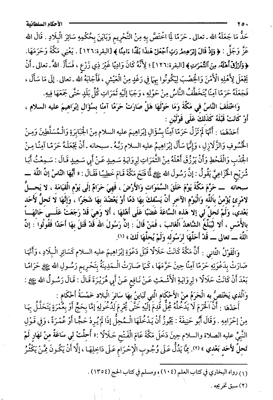 وَاخْتَلَفَ النَّاسُ فِي مَكَّةَ وَمَا حَوْلَهَا، هَلْ صَارَتْ حَرَمًا آمِنًا بِسُؤَالِ إبْرَاهِيمَ -عَلَيْهِ السَّلَامُ، أَوْ كَانَتْ قَبْلَهُ كَذَلِكَ، عَلَى قَوْلَيْنِ: