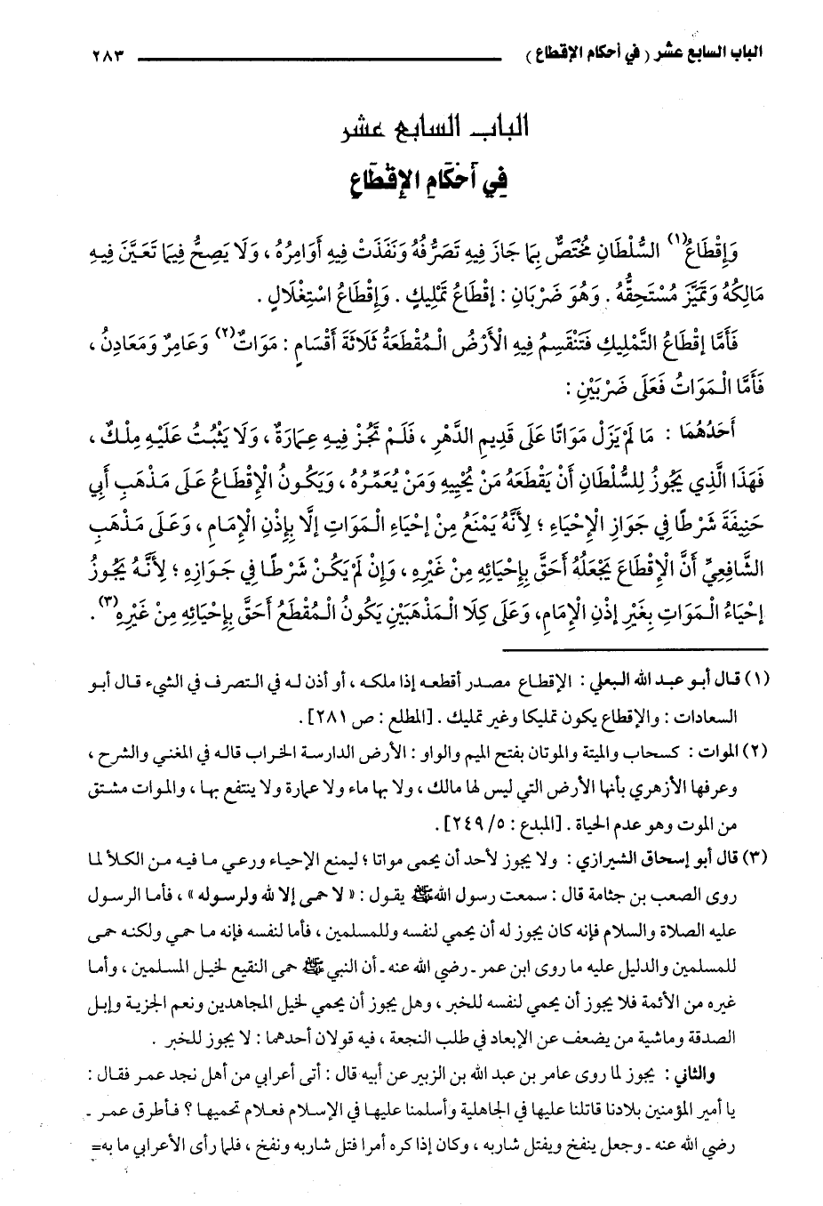 1 قال أبو عبد الله البعلي: الإقطاع مصدر أقطعه إذا ملكه، أو أذن له في التصرُّف في الشيء، قال أبو السعادات: والإقطاع يكون تمليكًا وغير تمليك. [المطلع: ص 281] .