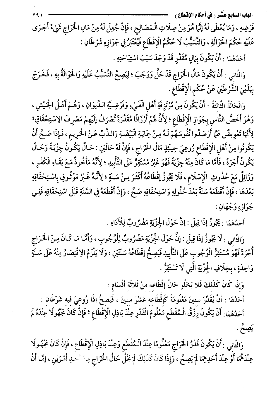 والثاني: أن يكون مال الخراج قد حلَّ ووجب؛ ليصحَّ التسبب عليه والحوالة به، فخرج بهذين الشرطين عن حكم الإقطاع.