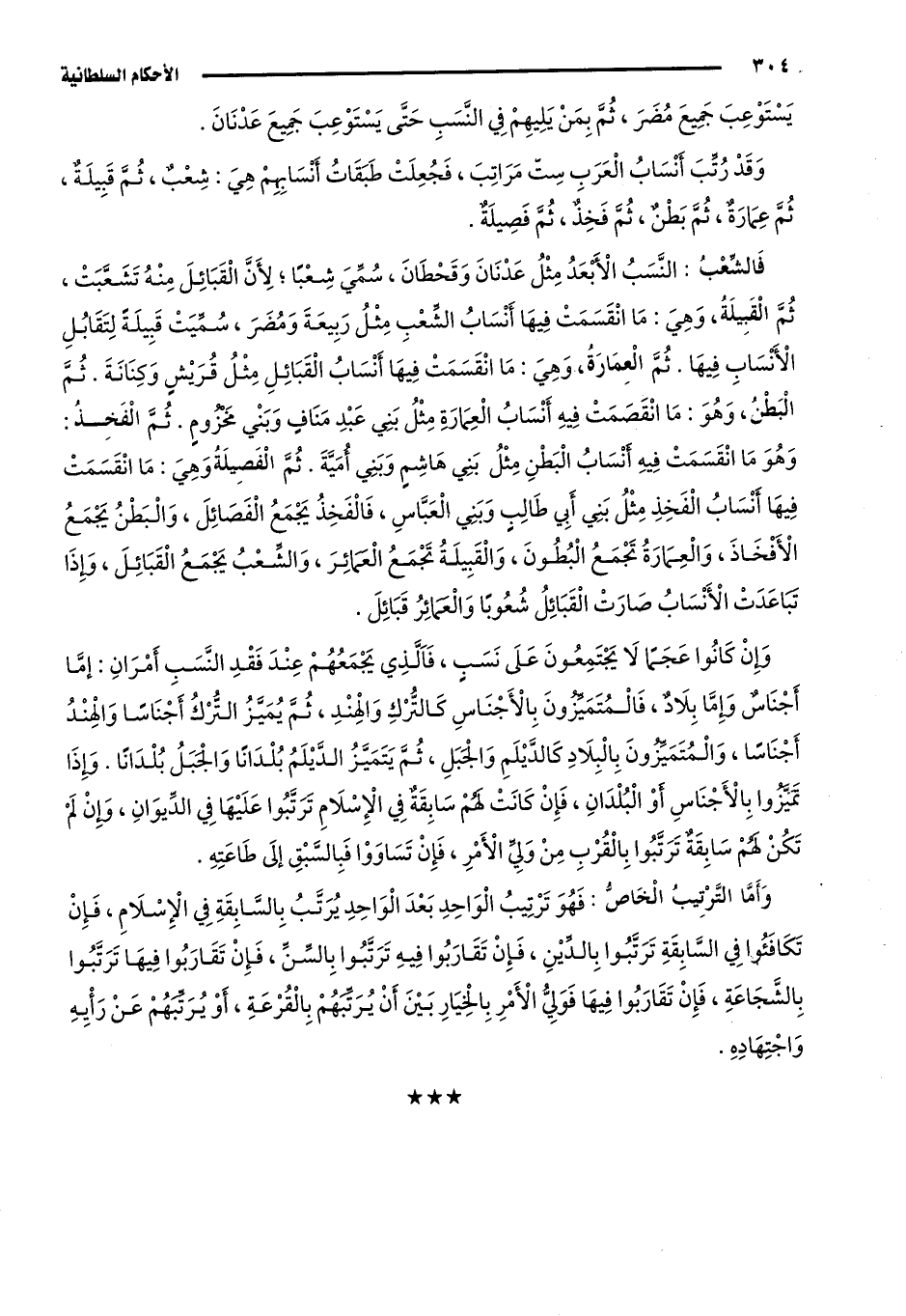 وقد رتّب أنساب العرب ست مراتب، فجعلت طبقات أنسابهم هي: شعب، ثم قبيلة، ثم عمارة، ثم بطن، ثم فخذ، ثم فصيلة.