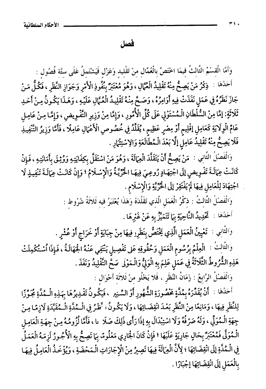 وأما القسم الثالث فيما اختص بالعمال من تقليد وعزل فيشتمل على ستة فصول: