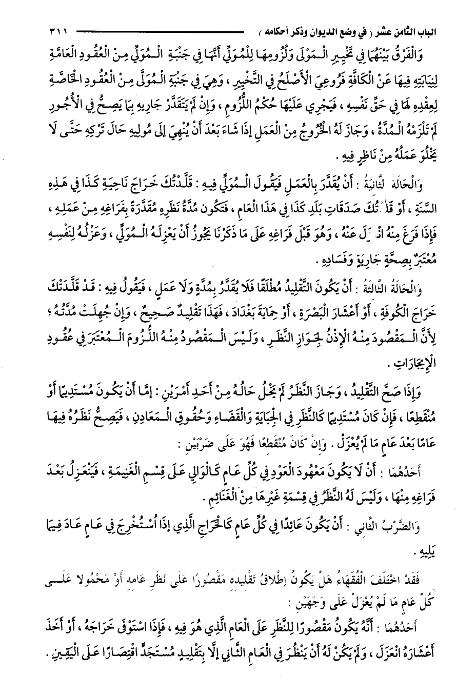 فقد اختلف الفقهاء هل يكون إطلاق تقليده مقصورًا على نظر عامه أو محمولًا على كل عام ما لم يعزل على وجهين: