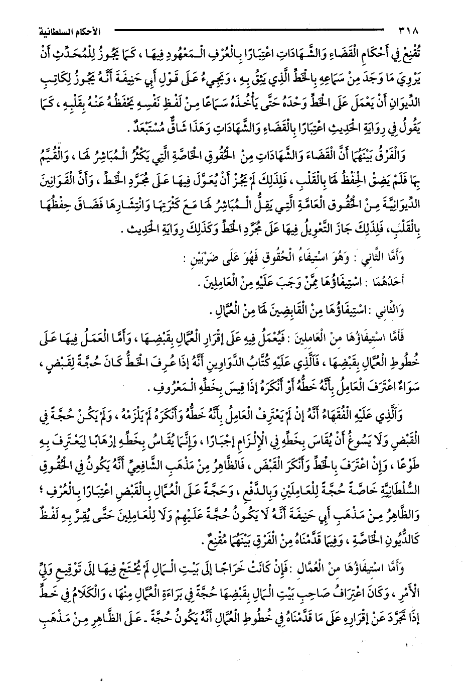 فأما استيفاؤها من العاملين: فيعمل فيه على إقرار العمال بقبضها، وأما العمل فيها على خطوط العمال بقبضها، فالذي عليه كتاب الدواوين أنه إذا عرف الخط كان حجة لقبض، سواء اعترف العامل بأنه خطة أو أنكره إذا قيس بخطه المعروف.