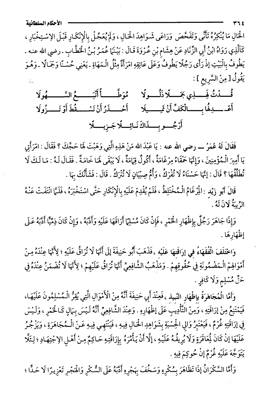 وأما المجاهرة بإظهار النبيذ، فعند أبي حنيفة أنه من الأموال التي يقر المسلمون عليها، فيمتنع من إراقته، ومن التأديب على إظهاره. وعند الشافعي أنه ليس بمال كالخمر، وليس في إراقته غرم، فيعتبر والي الحسبة بشواهد الحال فيه، فينتهي فيه عن المجاهرة، ويزجر عليها إن كان لمعاقرة، ولا يريقه عليه إلا أن يأمره بإراقته حاكم من أهل الاجتهاد؛ لئلَّا يتوجه عليه غرم إن حوكم فيه.