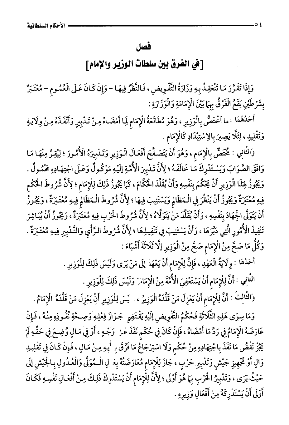 فَصْلٌ: "في الفروق بين سلطات الوزير والإمام"