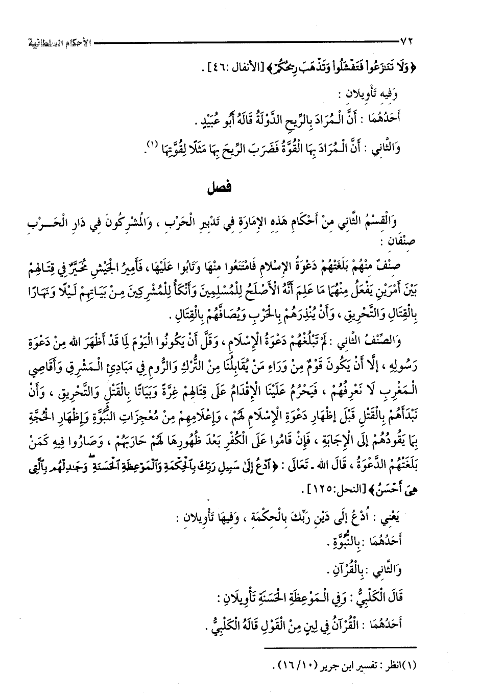 وَالْقِسْمُ الثَّانِي مِنْ أَحْكَامِ هَذِهِ الْإِمَارَةِ فِي تَدْبِيرِ الْحَرْبِ، وَالْمُشْرِكُونَ فِي دَارِ الْحَرْبِ صِنْفَانِ: