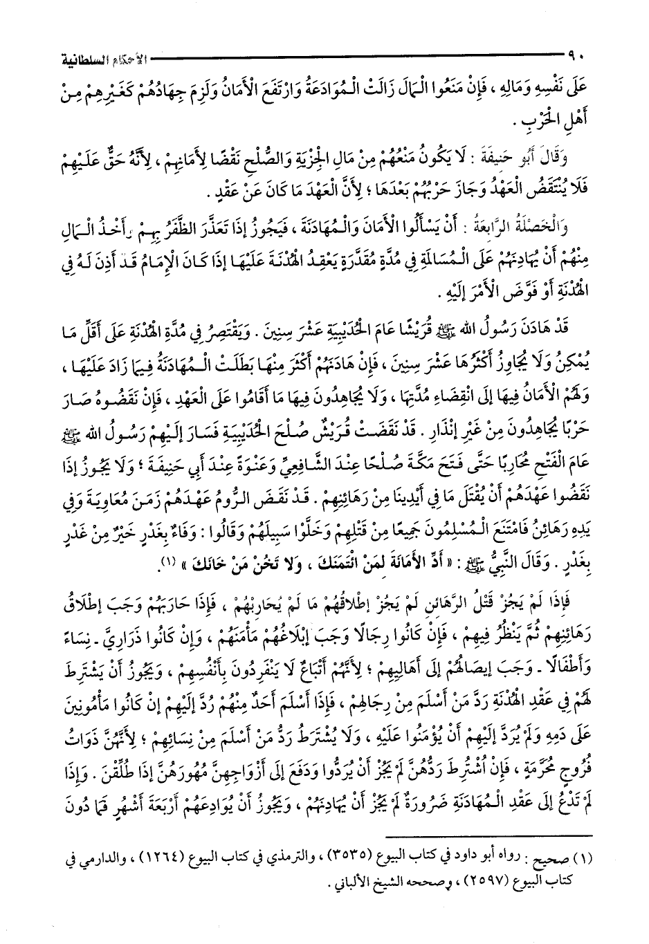 قَدْ هَادَنَ رَسُولُ اللَّهِ -صَلَّى اللَّهُ عَلَيْهِ وَسَلَّمَ- قُرَيْشًا عَامَ الْحُدَيْبِيَةِ عَشْرَ سِنِينَ. وَيَقْتَصِرُ فِي مُدَّةِ الْهُدْنَةِ عَلَى أَقَلِّ مَا يُمْكِنُ وَلَا يُجَاوِزُ أَكْثَرُهَا عَشْرَ سِنِينَ، فَإِنْ هَادَنَهُمْ أَكْثَرَ مِنْهَا بَطَلَتْ الْمُهَادَنَةُ فِيمَا زَادَ عَلَيْهَا، وَلَهُمْ الْأَمَانُ فِيهَا إلَى انْقِضَاءِ مُدَّتِهَا، وَلَا يُجَاهِدُونَ فِيهَا مَا أَقَامُوا عَلَى الْعَهْدِ، فَإِنْ نَقَضُوهُ صَارَ حَرْبًا يُجَاهِدُونَ مِنْ غَيْرِ إنْذَارِ، قَدْ نَقَضَتْ قُرَيْشٌ صُلْحَ الْحُدَيْبِيَةِ فَسَارَ إلَيْهِمْ رَسُولُ اللَّهِ -صَلَّى اللَّهُ عَلَيْهِ وَسَلَّمَ- عَامَ الْفَتْحِ مُحَارِبًا حَتَّى فَتَحَ مَكَّةَ صُلْحًا عِنْدَ الشَّافِعِيِّ، وَعَنْوَةً عِنْدَ أَبِي حَنِيفَةَ؛ وَلَا يَجُوزُ إذَا نَقَضُوا عَهْدَهُمْ أَنْ يُقْتَلَ مَا فِي أَيْدِينَا مِنْ رَهَائِنِهِمْ، قَدْ نَقَضَ الرُّومُ عَهْدَهُمْ زَمَنَ مُعَاوِيَةَ وَفِي يَدِهِ رَهَائِنُ فَامْتَنَعَ الْمُسْلِمُونَ جَمِيعًا مِنْ قَتْلِهِمْ وَخَلَّوْا سَبِيلَهُمْ وَقَالُوا: وَفَاءٌ بِغَدْرٍ خَيْرٌ مِنْ غَدْرٍ بِغَدْرٍ.