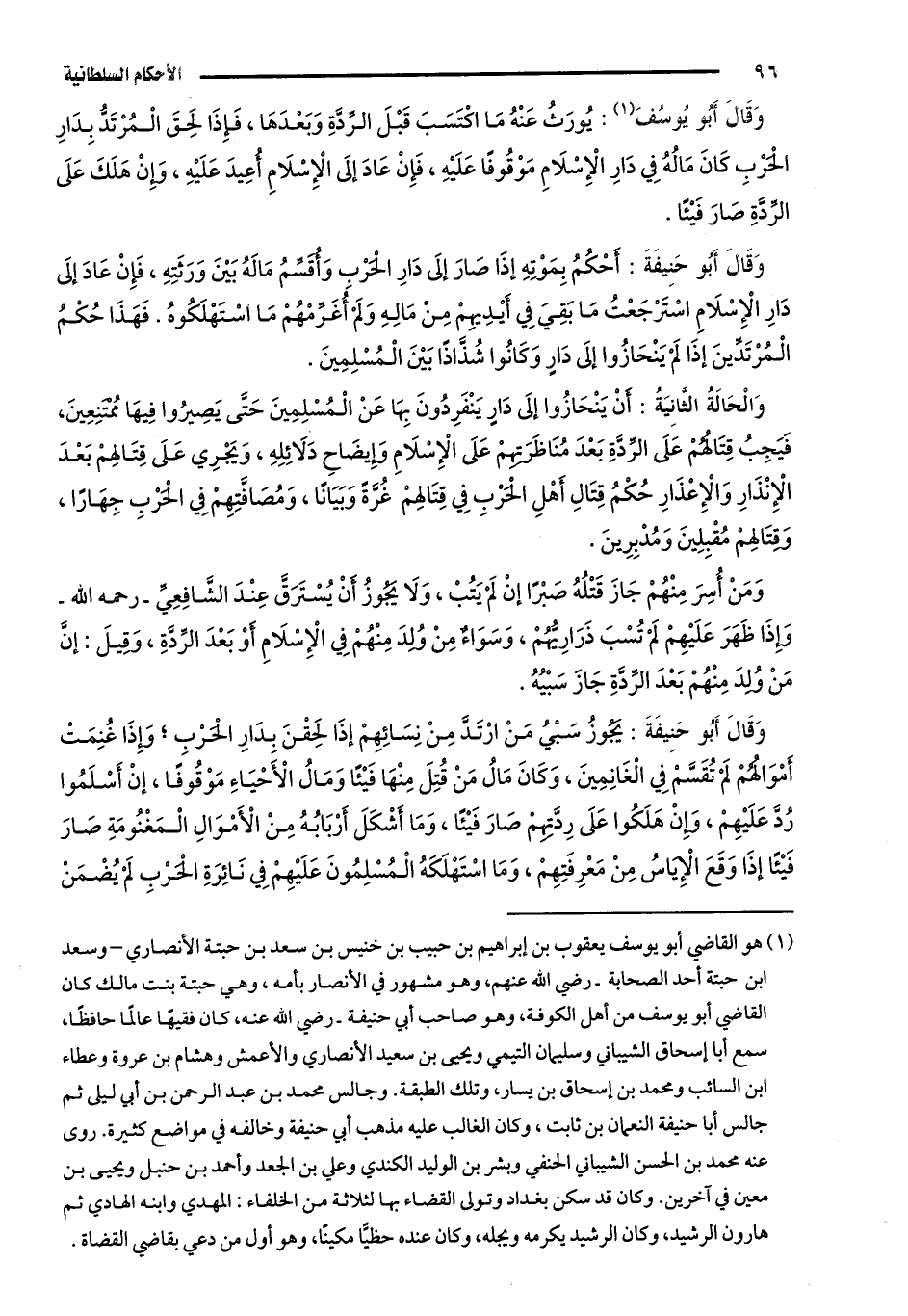 1 هو القاضي أبو يوسف يعقوب بن إبراهيم بن حبيب بن خنيس بن سعد بن حبتة الأنصاري، وسعد ابن حبتة أحد الصحابة -رضي الله عنهم، وهو مشهور في الأنصار بأمِّه، وهي حبتة بنت مالك، كان القاضي أبو يوسف من أهل الكوفة، وهو صاحب أبي حنيفة -رضي الله عنه، كان فقيهًا عالمًا حافظًا، سمع أبا إسحاق الشيباني، وسليمان التيمي، ويحيى بن سعيد الأنصاري، والأعمش، وهشام بن عروة، وعطاء بن السائب، ومحمد بن إسحاق بن يسار، وتلك الطبقة، وجالس محمد بن عبد الرحمن بن أبي ليلى، ثم جالس أبا حنيفة النعمان بن ثابت، وكان الغالب عليه مذهب أبي حنيفة، وخالفه في مواضع كثيرة، روى عنه محمد بن الحسن الشيباني الحنفي، وبشر بن الوليد الكندي، وعلي بن الجعد وأحمد بن حنبل، ويحيى بن معين في آخرين، وكان قد سكن بغداد وتولَّى القضاء بها لثلاثة من الخلفاء: المهدي وابنه الهادي ثم هارون الرشيد، وكان الرشيد يكرمه ويجلُّه، وكان عنده حظيًا، وهو أوّل من دعي بقاضي القضاة.
