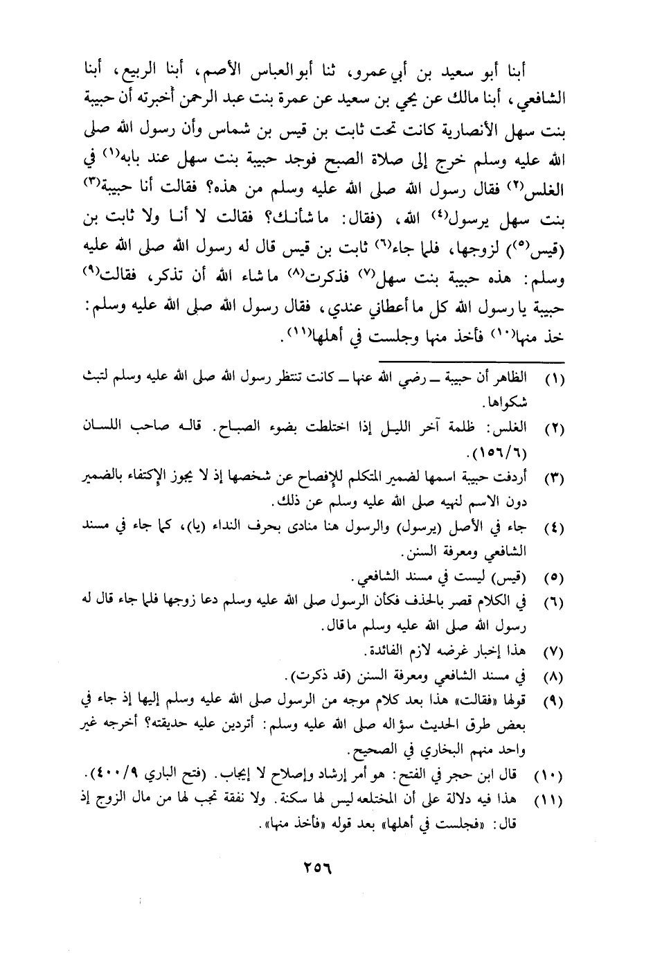 أبنا أَبُو سَعِيدِ بْنُ أَبِي عَمْرٍو ثنا أَبُو الْعَبَّاسِ الْأَصَّمُ أبنا الرَّبِيعُ أبنا الشَّافِعِيُّ أبنا مَالِكٌ عَنْ يَحْيَى بْنِ سَعِيدٍ عَنْ عَمْرَةَ بِنْتِ عَبْدِ الرَّحْمَنِ، أَخْبَرَتْهُ: §أَنَّ حَبِيبَةَ بِنْتَ سَهْلٍ الْأَنْصَارِيَّةَ كَانَتْ تَحْتَ ثَابِتِ بْنِ قَيْسِ بْنِ شَمَّاسٍ، وَأَنَّ رَسُولَ اللَّهِ صَلَّى اللهُ عَلَيْهِ وَسَلَّمَ خَرَجَ إِلَى صَلَاةِ الصُّبْحِ فَوَجَدَ حَبِيبَةَ بِنْتَ سَهْلٍ عِنْدَ بَابِهِ فِي الْغَلَسِ، فَقَالَ رَسُولُ اللَّهِ صَلَّى اللهُ عَلَيْهِ وَسَلَّمَ: «مَنْ هَذِهِ؟» فَقَالَتْ: أَنَا حَبِيبَةُ بِنْتُ سَهْلٍ يَا رَسُولَ اللَّهِ، فَقَالَ: «مَا شَأْنُكِ؟» فَقَالَتْ: لَا أَنَا وَلَا ثَابِتُ بْنُ قَيْسٍ، لِزَوْجِهَا، فَلَمَّا جَاءَ ثَابِتُ بْنُ قَيْسٍ قَالَ لَهُ رَسُولُ اللَّهِ صَلَّى اللهُ عَلَيْهِ وَسَلَّمَ: «هَذِهِ حَبِيبَةُ بِنْتُ سَهْلٍ» فَذَكَرَتْ مَا شَاءَ اللَّهُ أَنْ تَذْكُرَ، فَقَالَتْ حَبِيبَةُ: يَا رَسُولَ اللَّهِ كُلُّ مَا أَعْطَانِي عِنْدِي، فَقَالَ رَسُولُ اللَّهِ صَلَّى اللهُ عَلَيْهِ وَسَلَّمَ: «خُذْ مِنْهَا» فَأَخَذَ مِنْهَا وَجَلَسَتْ فِي أَهْلِهَا -[257]- هَذَا هُوَ الصَّحِيحُ، عَنْ مَالِكٍ، عَنْ يَحْيَى بْنِ سَعِيدٍ، عَنْ عَمْرَةَ بِنْتِ عَبْدِ الرَّحْمَنِ أَخْبَرَتْهُ، «فَأَخْبَرْتُهُ» إِنَّمَا هُوَ فِي أَخْبَارِ عَمْرَةَ يَحْيَى بْنَ سَعِيدٍ، لَا فِي أَخْبَارِ حَبِيبَةَ عَمْرَةَ. وَهَكَذَا رَوَاهُ أَصْحَابُ الْمُوَطَّأِ، عَنْ مَالِكٍ أبناه أَبُو أَحْمَدَ الْمِهْرَجَانَيُّ، أبنا أَبُو بَكْرٍ مُحَمَّدُ بْنُ جَعْفَرٍ الْمُزَكِّي، ثنا مُحَمَّدُ بْنُ إِبْرَاهِيمَ الْعَبْدِيُّ ثنا ابْنُ بُكَيْرٍ ثنا مَالِكُ، عَنْ يَحْيَى بْنِ سَعِيدٍ عَنْ عَمْرَةَ بِنْتِ عَبْدِ الرَّحْمَنِ بْنِ سَعْدِ بْنِ زُرَارَةَ الْأَنْصَارِيِّ، أَنَّهَا أَخْبَرَتْهُ عَنْ حَبِيبَةَ بِنْتِ سَهْلٍ الْأَنْصَارِيَّةِ، أَنَّهَا كَانَتْ تَحْتَ ثَابِتِ بْنِ قَيْسِ بْنِ شَمَّاسٍ، فَذَكَرَهُ فَكَانَ يَنْبَغِي لِمَنْ أَخْرَجَ الْمُسْنَدَ أَنْ يُخَرِّجَ هَذَا الْحَدِيثَ مِنْ كِتَابِ بُلُوغِ الرُّشْدِ، لِيَكُونَ عَلَى الصِّحَّةِ، وَلَا يُخَرِّجَ مَا وَقَعَ فِيهِ الْوَهْمُ مِنَ الْكَاتِبِ وَبِاللَّهِ التَّوْفِيقُ وَقَدْ رُوِيَ هَذَا الْحَدِيثُ عَنْ عَبْدِ اللَّهِ بْنِ أَبِي بَكْرٍ، عَنْ عَمْرَةَ، عَنْ عَائِشَةَ -[258]- رَضِيَ اللَّهُ عَنْهَا: أَنَّ حَبِيبَةَ، فَهُوَ مِنْ طَرِيقِ يَحْيَى بْنِ سَعِيدٍ مُرْسَلٌ