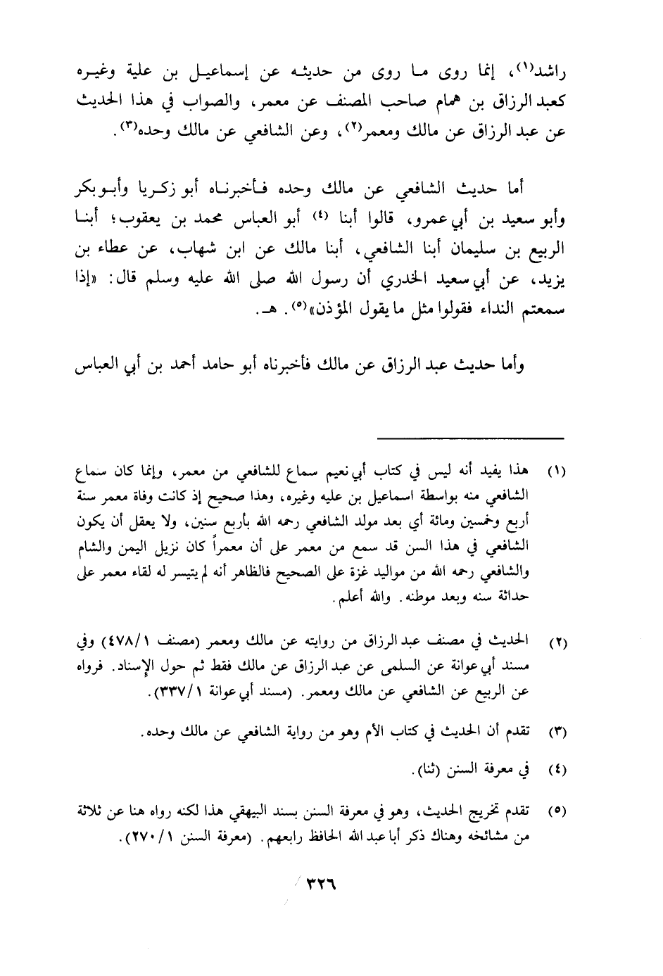 فَأَخْبَرَنَاهُ أَبُو زَكَرِيَّا وَأَبُو بَكْرٍ، وَأَبُو سَعِيدِ بْنُ أَبِي عَمْرٍو، قَالُوا: أبنا أَبُو الْعَبَّاسِ مُحَمَّدُ بْنُ يَعْقُوبَ، أبنا الرَّبِيعُ بْنُ سُلَيْمَانَ أبنا الشَّافِعِيُّ أبنا مَالِكٌ عَنِ ابْنِ شِهَابٍ عَنْ عَطَاءِ بْنِ يَزِيدَ عَنْ أَبِي سَعِيدٍ الْخُدْرِيِّ: أَنَّ رَسُولَ اللَّهِ صَلَّى اللهُ عَلَيْهِ وَسَلَّمَ قَالَ: §«إِذَا سَمِعْتُمُ النِّدَاءَ فَقُولُوا مِثْلَ مَا يَقُولُ الْمُؤَذِّنُ» وَأَمَّا حَدِيثُ عَبْدِ الرَّزَّاقِ عَنْ مَالِكٍ