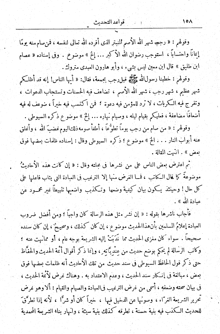 فأجاب ناشرها بقوله: "إن نشر مثل هذه الرسالة كان واجبًا؛ ومن أفضل ضروب العبادة إعلام المسلمين بأن هذا الحديث موضوع، إن كان كذلك، وصحيح إن كان سنده صحيحًا سواء كان مغزى الحديث مما ندبت إليه الشريعة بوجه عام أو مما نهت عنه وكاتب الرسالة لم يحكم بوضع حديث من عندياته، وإنما ذكر أقوال أئمة الحديث والحفاظ حتى ذكر قول الحافظ السيوطي في سند حديث من تلك الأحاديث أنه ظلمات بعضها فوق بعض مبالغة في إنكار سند الحديث، وعدم الاعتداد به. وهناك غرض لأئمة الحديث، في بيان صحته وضعفه، أسمى من غرض الترغيب في العبادة والصيام والقيام: ألا وهو غرض تحرير الشريفة الغراء، وصونها عن الدخيل فيها، خيرًا كان أو شرًّا؛ لأنه إذا تطرق للحديث الكذب فيه بنية حسنة، تطرقه كذلك نبيه سيئة وانهار بناء الشريعة المحمدية