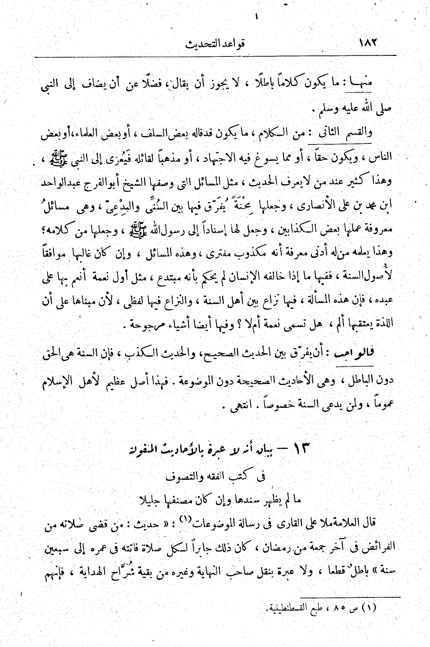 13- بيان أنه لا عبرة بالأحاديث المنقولة في كتب الفقه والتصوف؛ ما لم يظهر سندها وإن كان مصنفها جليلا: