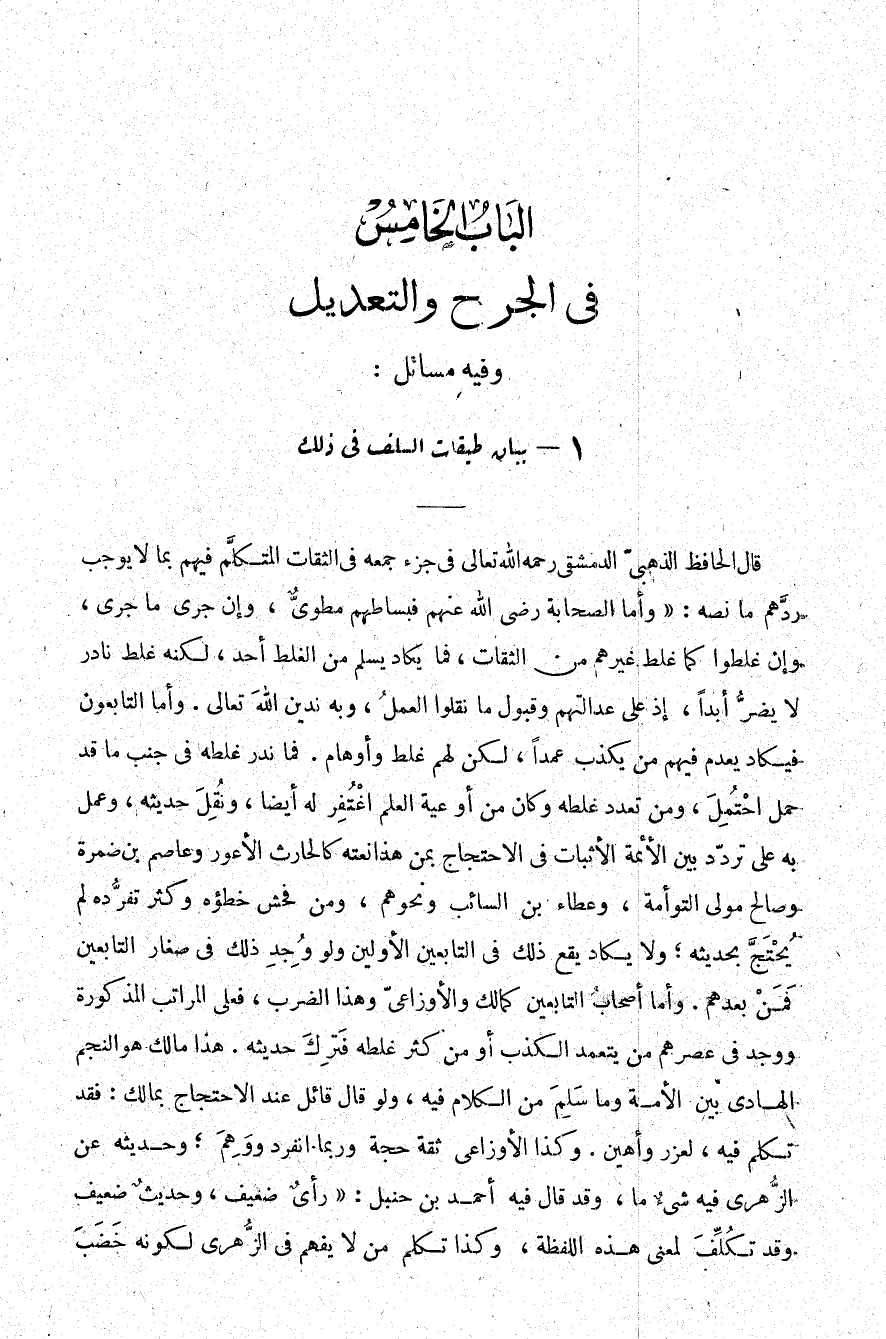 الباب الخامس: في الجرح والتعديل وفيه مسائل