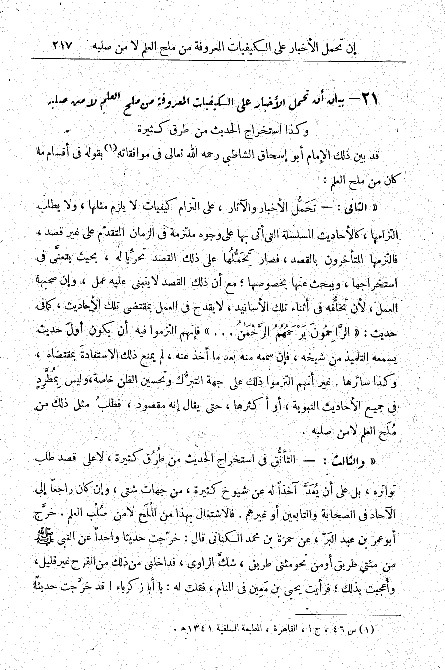 1 ص46، ح1 القاهرة، المطبعة السلفية 1341هـ.