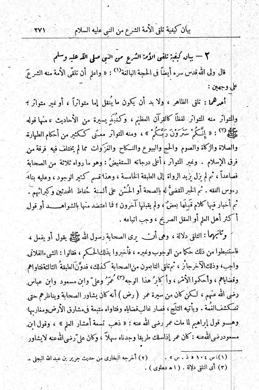 قال ولي الله قدس سره أيضًا في الحجة البالغة1: واعلم أن تلقي الأمة منه الشرع على وجهين: