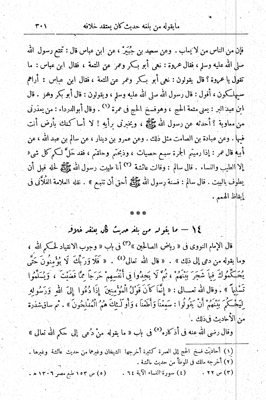 14- ما يقوله من بلغه حديث كان يعتقد خلافه: