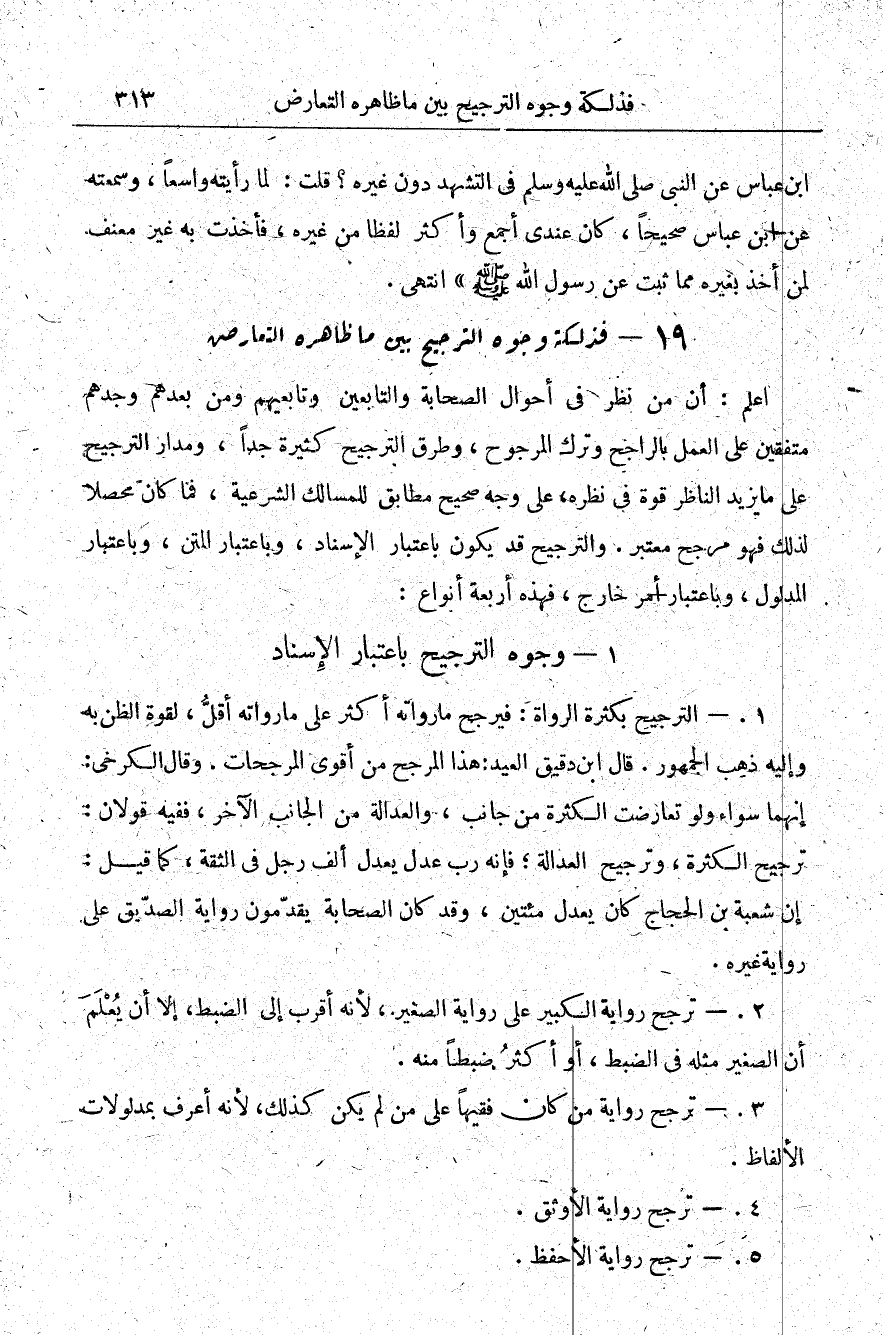 اعلم أن من نظر في أحوال الصحابة والتابعين وتابعيهم ومن بعدهم وجدهم متفقين على العمل بالراجح، وترك المرجوح وطرق الترجيح كثيرة جدًّا، ومدار الترجيح على ما يزيد الناظر قوة في نظره على وجه صحيح مطابق للمسالك الشرعية فما كان محصلا لذلك فهو مرجح معتبر، والترجيح قد يكون باعتبار الإسناد وباعتبار المتن وباعتبار المدلول وباعتبار أمر خارج فهذه أربعة أنواع:
