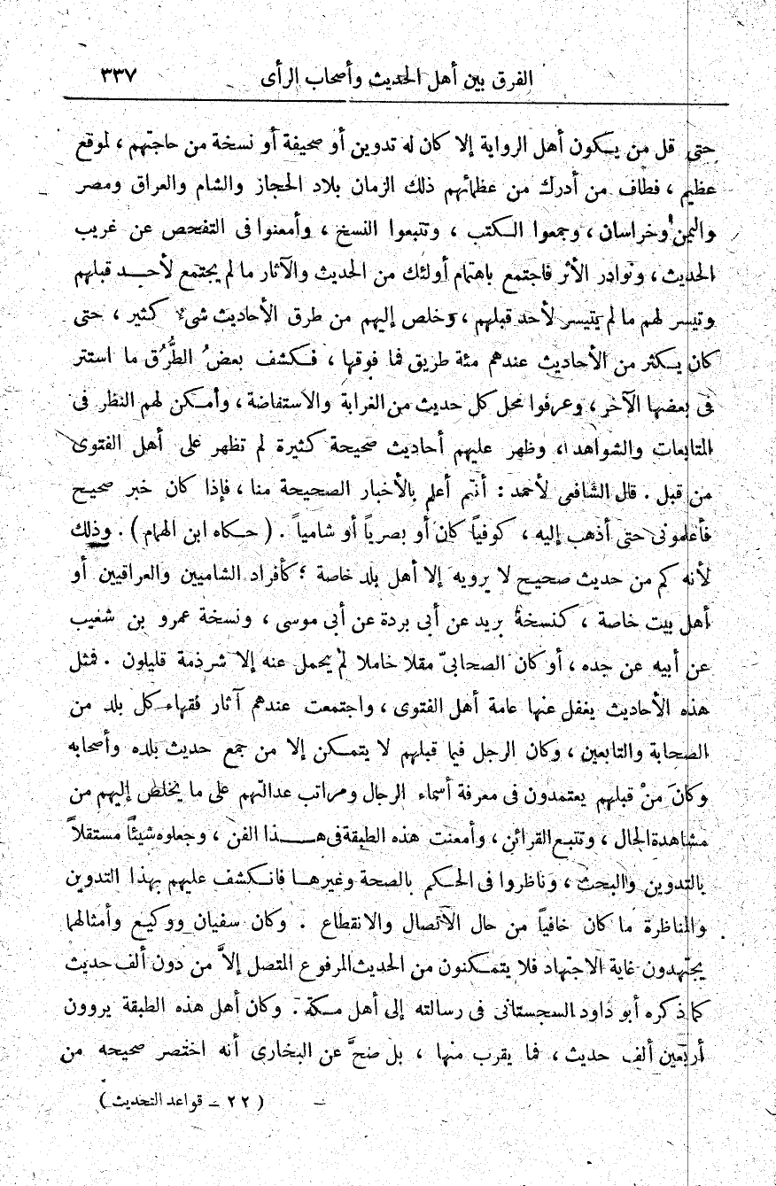 حتى قل من يكون أهل الرواية إلا كان له تدوين أو صحيفة أو نسخة من حاجتهم، لموقع عظيم، فطاف من أدرك من عظائهم ذلك الزمان بلاد الحجاز والشام والعراق ومصر واليمن وخراسان وجمعوا الكتب، وتتبعوا النسخ وأمعنوا في التفحص غريب الحديث، ونوادر الأثر فاجتمع باهتمام أولئك من الحديث والآثار ما لم يجتمع لأحد قبلهم، ويتسر لهم ما لم يتيسر لأحد قبلهم، وخلص إليهم من طرق الأحاديث شيء كثير حتى كان يكثر من الأحاديث عندهم مائة طريق فما فوقها فكشف بعض الطرق ما استتر في بعضها الآخر، وعرفوا محل كل حديث من الغرابة والاستفاضة وأمكن لهم النظر في المتابعات والشواهد، وظهر عليهم أحاديث صحيحة كثيرة لم تظهر على أهل الفتوى من قبل قال الشافعي: لأحمد أنتم أعلم بالأخبار الصحيحة منا فإذا كان خبر صحيح فأعلموني حتى أذهب إليه كوفيًّا كان أو بصريًّا أو شاميًّا "حكاه ابن الهمام" وذلك لأنه كم من حديث صحيح لا يرويه إلا أهل بلد خاصة كأفراد الشاميين والعراقيين أو أهل بيت خاصة كنسخة بريد عن أبي بردة عن أبي موسى، ونسخة عمرو بن شعيب عن أبيه عن جده، أو كان الصحابي مقلا خاملا لم يحمل عنه إلا شرذمة قليلون فمثل هذه الأحاديث يغفل عنها عامة أهل الفتوى، واجتمعت عندهم آثار فقهاء كل بلد من الصحابة والتابعين، وكان الرجل فيما قبلهم لا يتمكن إلا من جمع حديث بلده وأصحابه، وكان من قبلهم يعتمدون في معرفة أسماء الرجال ومراتب عدالتهم على ما يخلص إليهم من مشاهدة الحال، وتتبع القرائن وأمعنت هذه الطبقة في هذا الفن، وجعلوه شيئًا مستقلًّا بالتدوين والبحث، وناظروا في الحكم بالصحة وغيرها فانكشف عليهم بهذا التدوين والمناظرة ما كان خافيًا من حال الاتصال والانقطاع، وكان سفيان ووكيع وأمثالهما يجتهدون غاية الاجتهاد فلا يتمكنون من الحديث المرفوع المتصل إلا من دون ألف حديث كما ذكره أبو داود السجستاني في رسالته إلى أهل مكة، وكان أهل هذه الطبقة يروون أربعين ألف حديث فما يقرب منها بل صح عن البخاري أنه اختصر صحيحة من