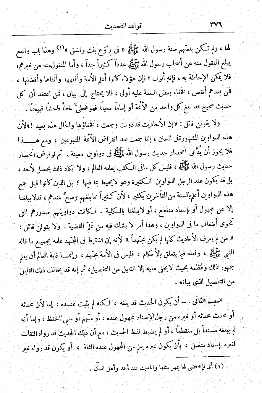 ولا يقولن قائل: "إن الأحاديث قد دونت وجمعت، فخفاؤها والحال هذه بعيد! " لأن هذه الدواوين المشهورة في السنن، إنما جمعت بعد انقراض الأئمة المتبوعين، ومع هذا فلا يجوز أن يُدعى انحصار حديث رسول الله -صلى الله عليه وسلم- في دواوين معينة، ثم لو فرض انحصار حديث رسول الله -صلى الله عليه وسلم- فليس كل ما في الكتب يعلمه العالم، ولا يكاد ذلك يحصل لأحد، بل قد يكون عند الرجل الدواوين الكثيرة، وهو لا يحيط بما فيها، بل الذين كانوا قبل جمع هذه الدواوين أعلم بالسنة من المتأخرين بكثير لأن كثيرًا مما بلغهم وصح عندهم قد لا يبلغنا إلا عن مجهول أو بإسناد منقطع أو لا يبلغنا بالكلية فكانت دواوينهم صدورهم التي تحوي أضعاف ما في الدواوين، وهذا أمر لا يشك فيه من علم القضية. ولا يقولن قائل "من لم يعرف الأحاديث كلها لم يكن مجتهدا" لأنه إن اشترط في المجتهد علمه بجميع ما قاله النبي -صلى الله عليه وسلم- وفعله فيما يتعلق بالأحكام فليس في الأمة مجتهد، وإنما غاية العلم أن يعلم جمهور ذلك وعظمه بحيث لا يخفى عليه إلا القليل من التفصيل، ثم إنه قد يخالف ذلك القليل من التفصيل الذي يبلغه.