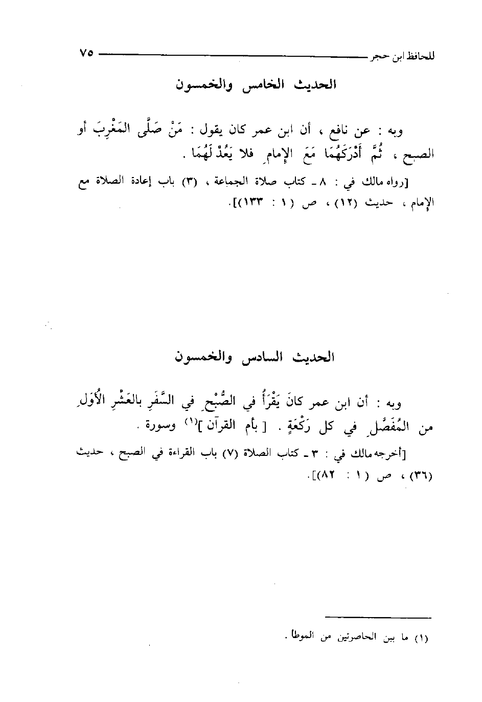 56 - وَبِه أَن ابْن عمر كَانَ يقْرَأ فِي الصُّبْح فِي السّفر بالعشر الأول من الْمفصل فِي كل رَكْعَة بِأم الْقُرْآن وسوره