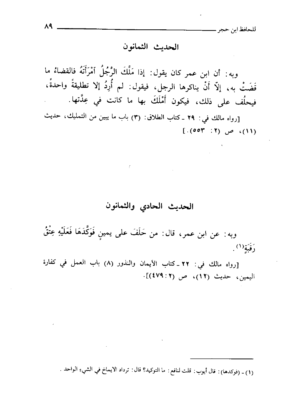 81 - وَبِه عَن ابْن عمر قَالَ من حلف على يَمِين فوكدها فَعَلَيهِ عتق رَقَبَة