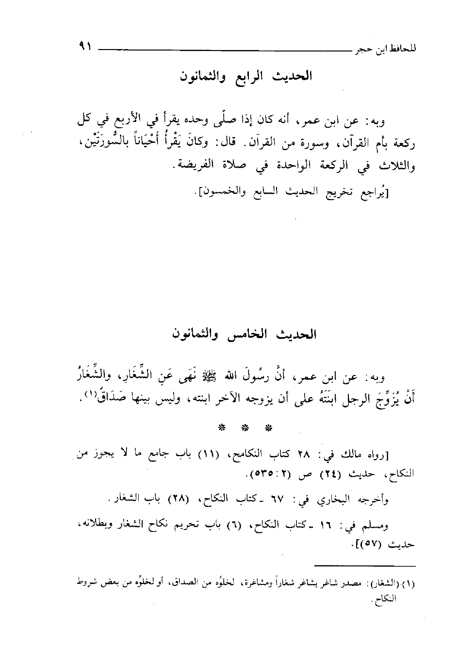 85 - وَبِه عَن ابْن عمر أَن رَسُول الله صلى الله عَلَيْهِ وَسلم نهى عَن الشّغَار والشغار أَن يُزَوّج الرجل ابْنَته على أَن يُزَوجهُ الآخر ابْنَته وَلَيْسَ بَينهَا صدَاق