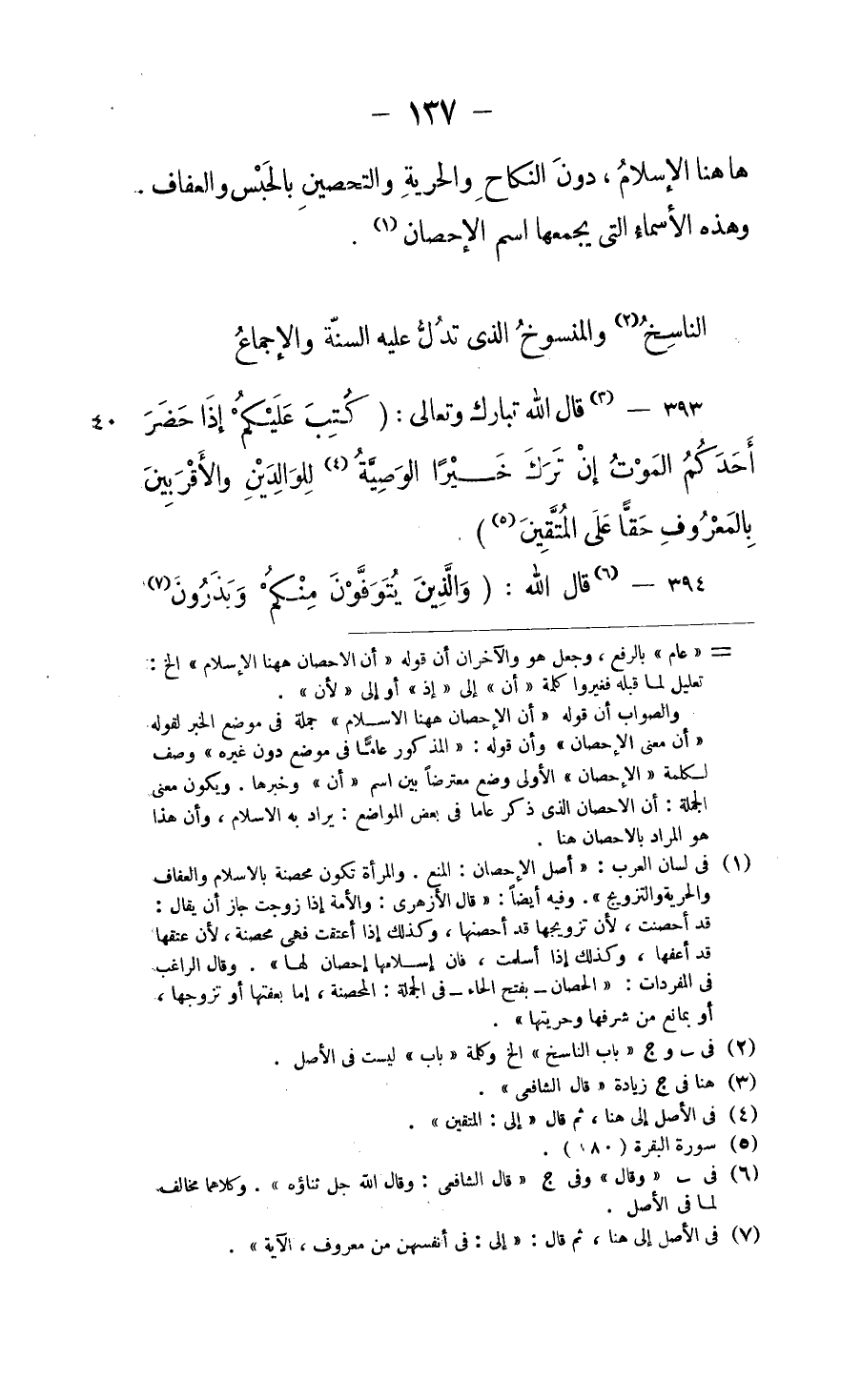 ووَجدْنا أهلَ الفُتْيَا، ومَنْ حَفِظْنَا عنه مِنْ أهل العلم بالمَغَازِي، مِنْ قُريش وغيرهمْ: لا يختلفون في أنَّ النبي قال عامَ الفَتْحِ: " لاَ وَصِيَّةَ لِوَارِثٍ، وَلاَ يُقْتَلُ مُؤْمِنٌ بِكَافِرٍ "، ويَأْثُرُونه عَنْ مَنْ حَفظوا عنه مِمَّنْ لَقُوا من أهل العلم بالمغازي.