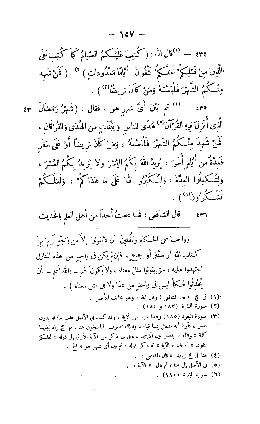 قال "الشافعي": فما علمتُ أحداً مِن أهل العلم بالحديث ⦗١٥٨⦘ قَبْلنا تكلَّفَ أنْ يرْوِيَ عن النبي أنَّ الشهر المفروض صومه شهرُ رمضان الذي بَيْن شعبان وشوالٍ، لمعرفتهم بشهر رمضان مِن الشهور واكتفاءً منهم بأن الله فَرَضَهُ.
