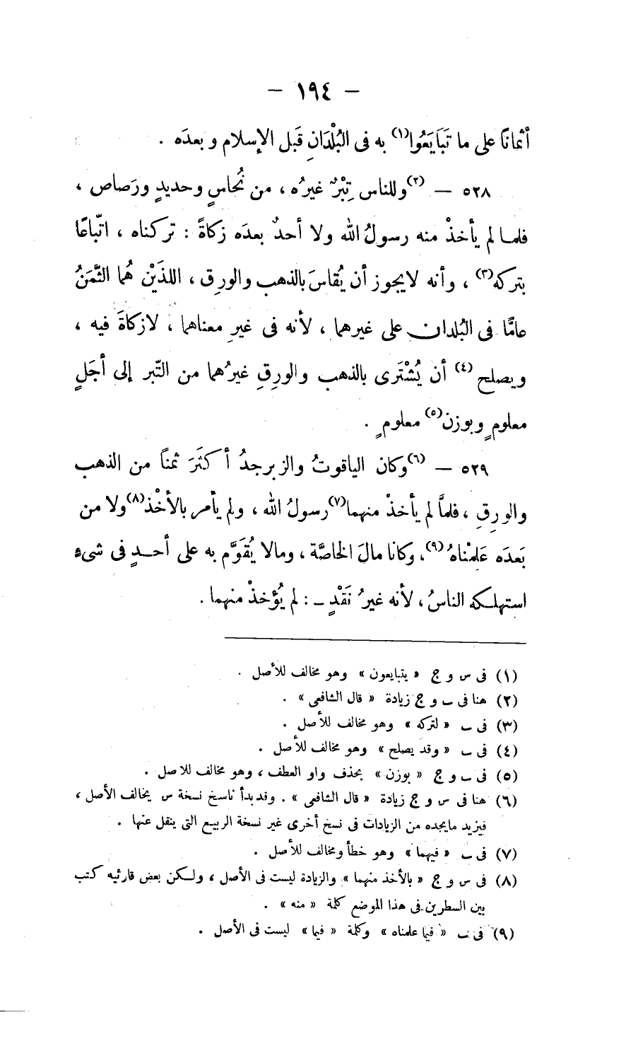 وكان الياقوتُ والزبرجدُ أكثرَ ثَمَنًا مِن الذهب والورِق، فلَمَّا لم يأخذ منهما رسول الله، ولم يأمُرْ بالأخذ ولا مَن بَعْدَه عَلِمْناه، وكانا مالَ الخاصَّةِ، وما لا يُقَوَّمُ به على أحد في شيء استهلكه الناسُ، لأنه غيرُ نَقْدٍ، لم يأخذ منهما.