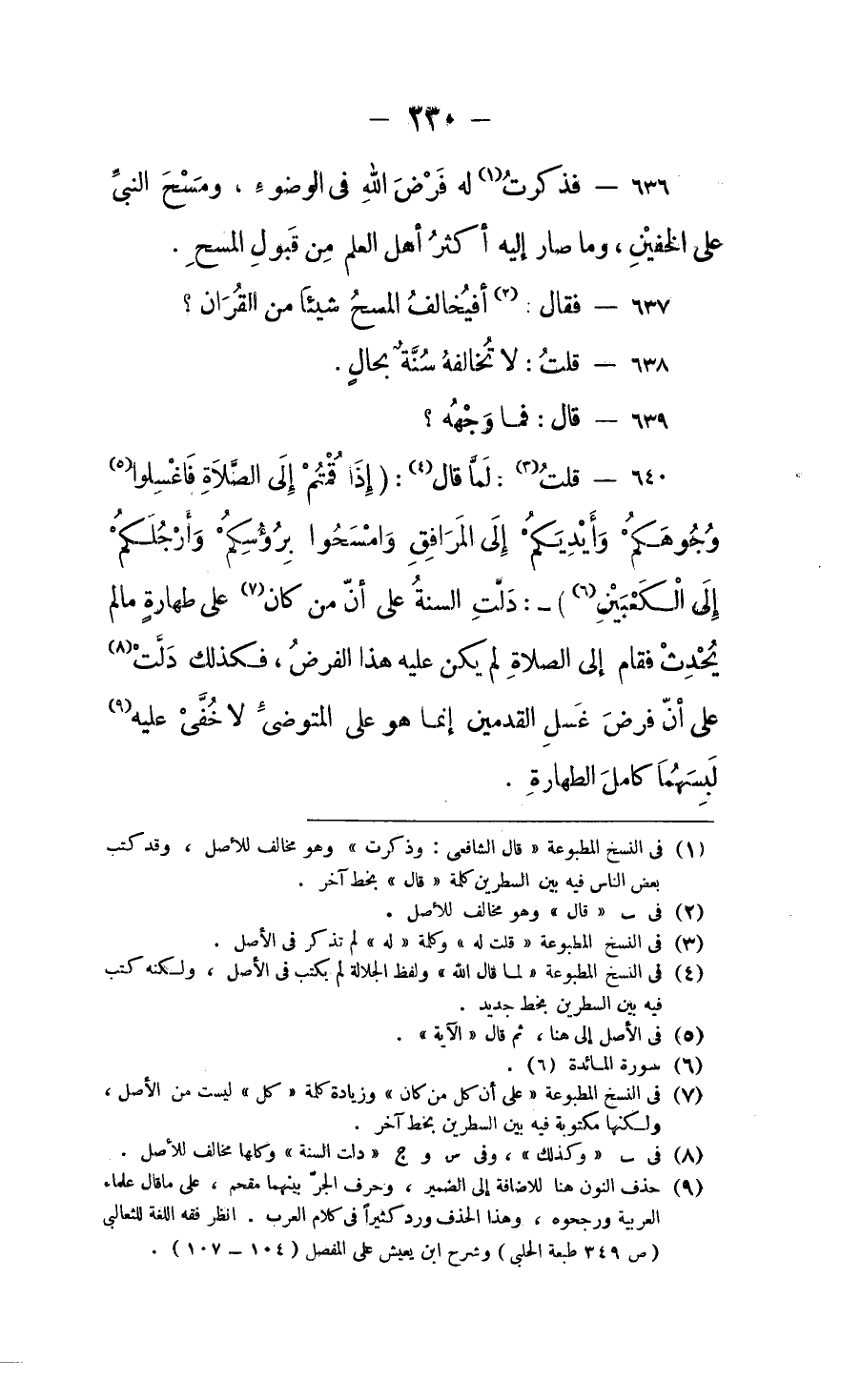 فذكرتُ له فرْض اللهِ في الوُضوء، ومَسْحَ النبي على الخُفَّيْنِ، وما صارَ إليه أكثرُ أهْلِ العِلم مِن قَبُول المَسْحِ.