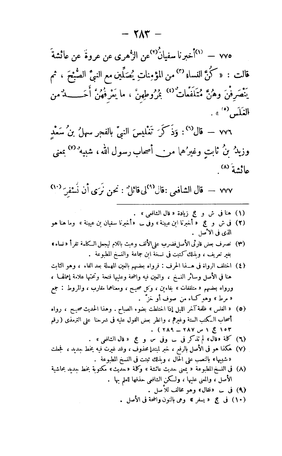 قال "الشافعي": قال لي قائل: نحن نرى أن نَسْفِرَ ⦗٢٨٤⦘ بالفجر اعتماداً على حديث "رافع بن خديج" ونزْعُمُ أن الفضْل في ذلك، وأنت ترى أنْ جائِزًا لنا إذا اختلف الحديثان أنْ نأخذَ بأحدهما، ونحن نَعُدُّ هذا مخالفاً لحديث "عائشة".