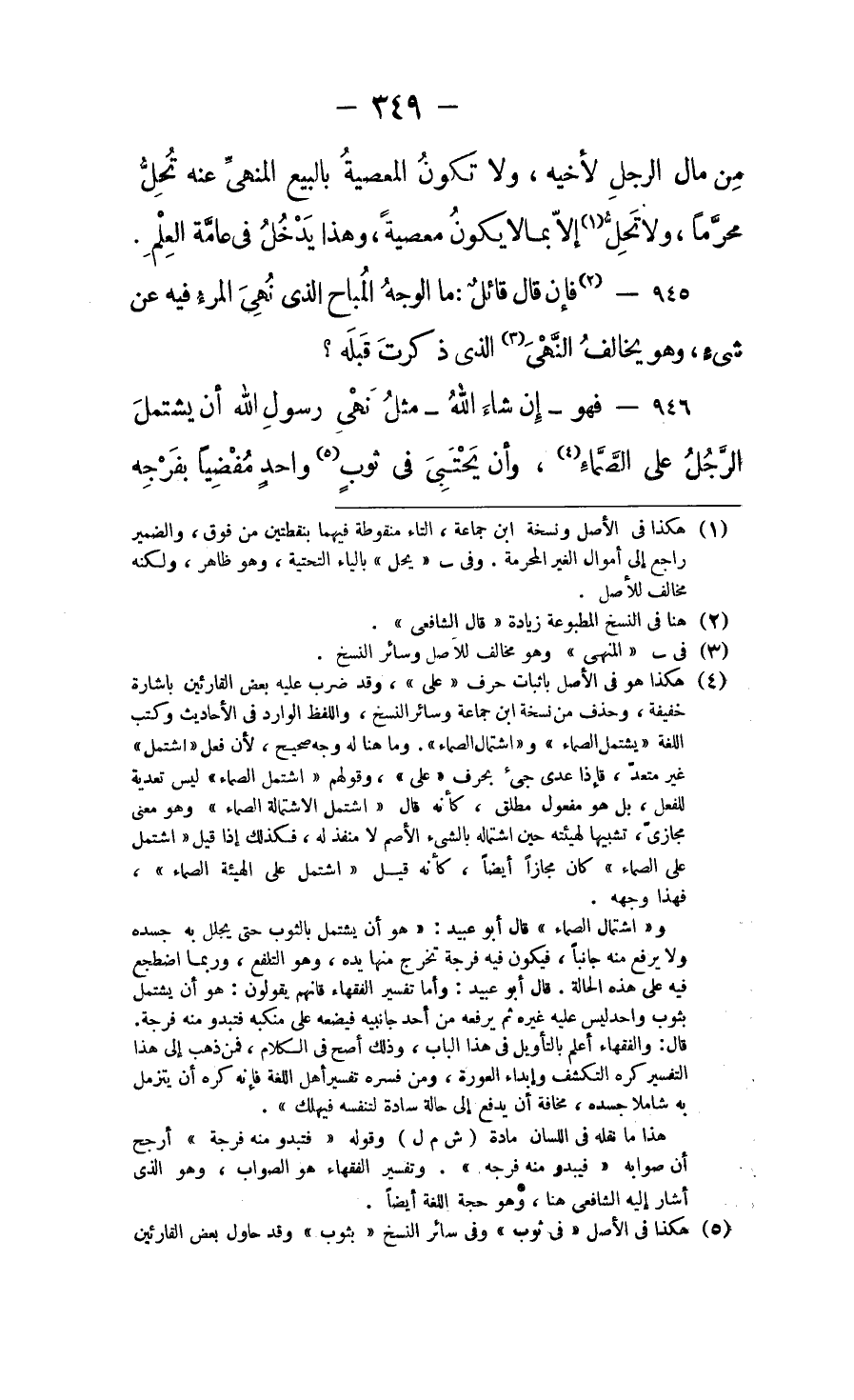 فهو - إن شاء الله - مثل نهي رسول الله أن يشتمل الرجل على الصَّمَّاءِ (١) ، وأن يَحْتَبِيَ في ثوب واحد مُفْضِيًا بِفَرْجِه ⦗٣٥٠⦘ إلى السماء، وأنه أمر غُلاماً أن يأكل مما بين يديه، ونهاه أن يأكل مِن أعلى الصَّحْفَةِ، ويُرْوَى عنه، وليس كثبوت ما قبله مما ذكرنا: أنه نهى عن أن يَقْرُِن الرجل إذا أكل بين التمرتين، وأن يكْشِف التمْرة عمَّا في جَوْفِها، وأنْ يُعَرِّسَ على ظهر الطريق.