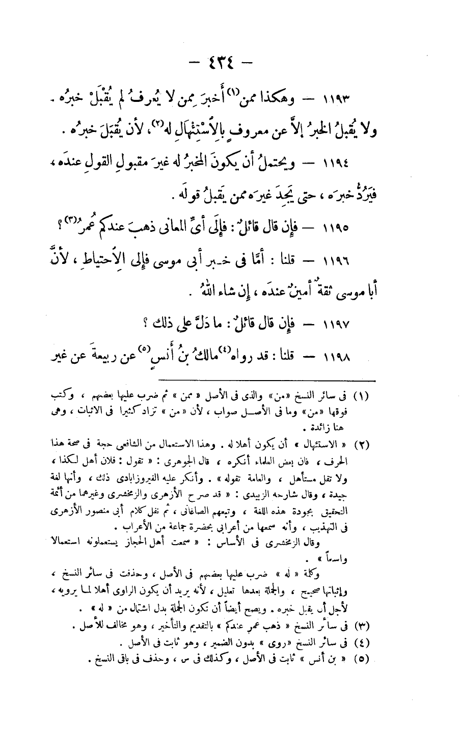 قلنا: قد رواه مالك بن أنس عن ربيعة عن غير ⦗٤٣٥⦘ واحد من علمائهم حديثَ أبي موسى، وأن عمر قال لأبي موسى: وأَمَا إني لم أتهمك، ولكن خشيت أن يَتَقَوَّلَ الناس على رسول الله.