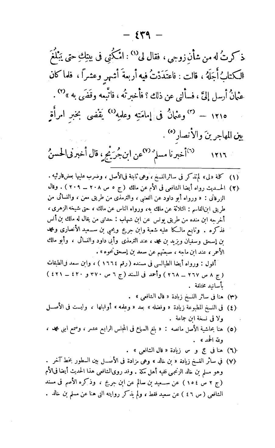 (٢) روى الحديث الشيخان وغيرهما وروى القصة أحمد رقم ١٩٩٠ و ٣٢٥٦ والبيهقي ٥/١٦٣