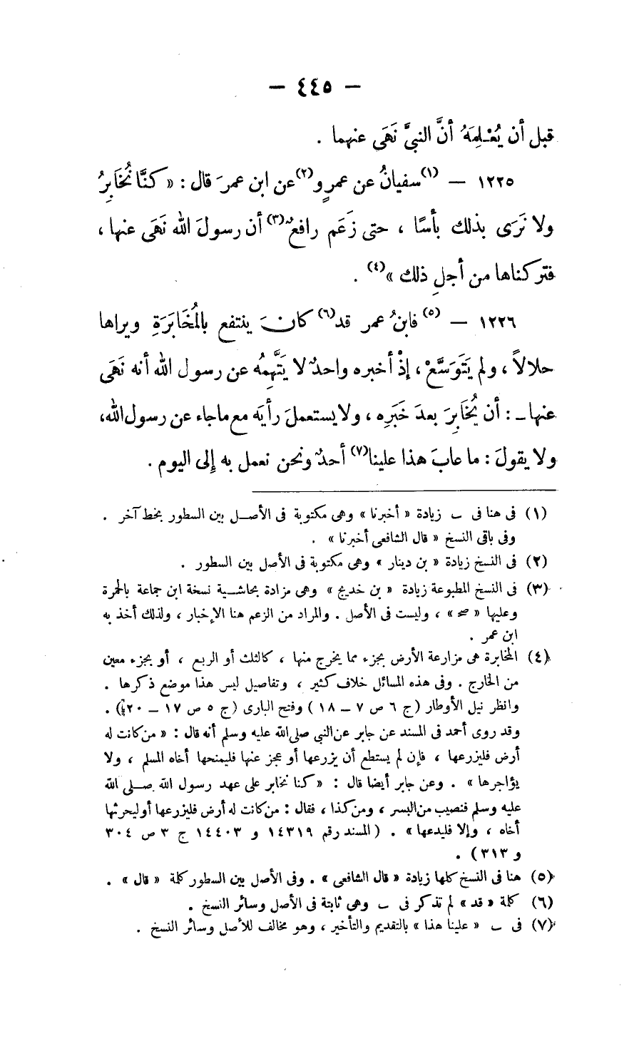 فابن عمر قد كان ينتفع بالمخابَرة، ويراها حلالاً، ولم يتوسع، إذ أخبره واحد لا يتهمه عن رسول الله أنه نهى عنها: أن يُخَابِرَ بعد خَبَرِهِ، ولا يستعملَ رأيه مع ما جاء عن رسول الله، ولا يقولَ: ما عاب هذا علينا أحد، ونحن نعمل به إلى اليوم.