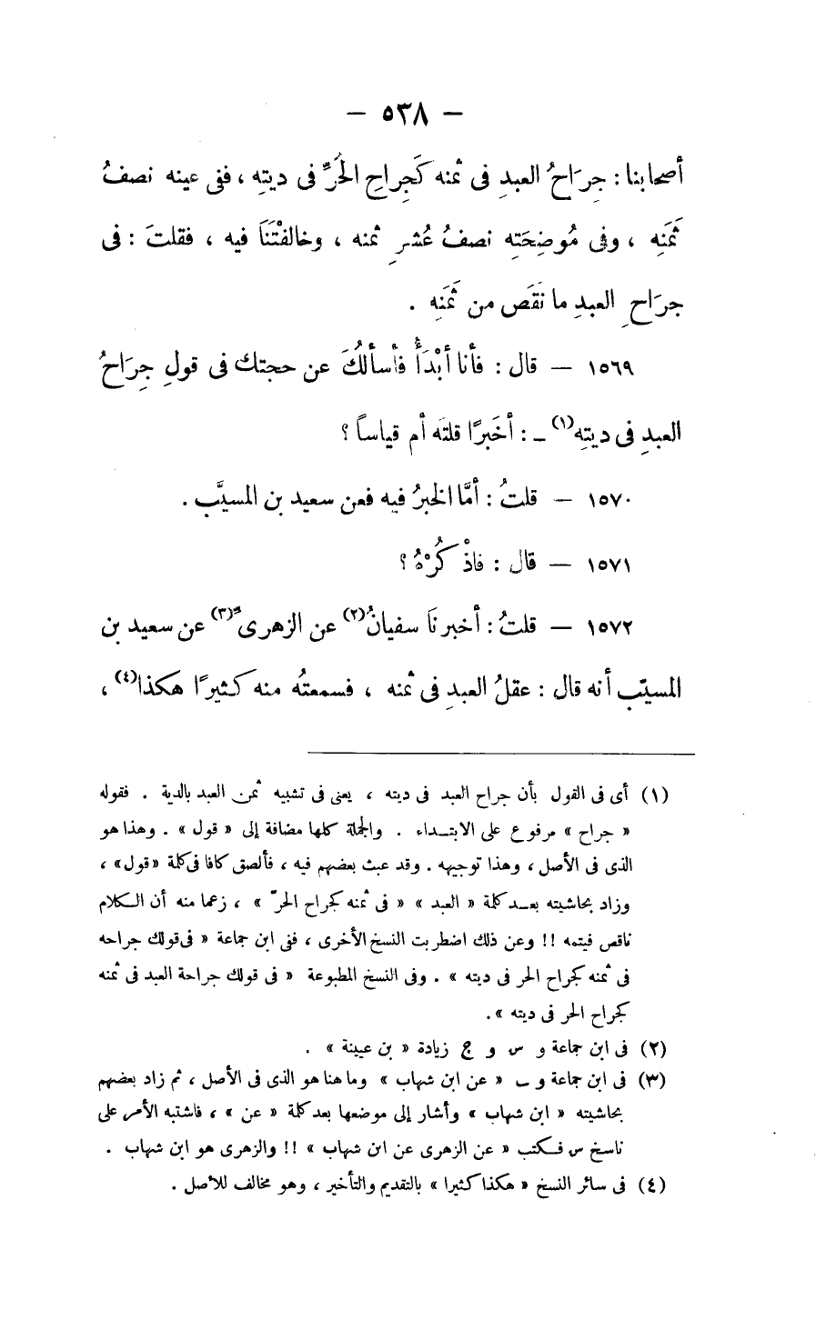 قال: فأنا أبدأ، فأسألك عن حجتك في قول جِرَاح العبد في ديته: أخبراً قلته أم قياساً؟