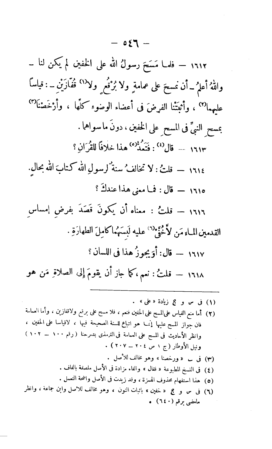فكذلك دلت سنة رسول الله بالمسح أنه قصد بالفرض في غسل القدمين من لا خُفَّي عليه لبسهما كاملَ الطهارة.