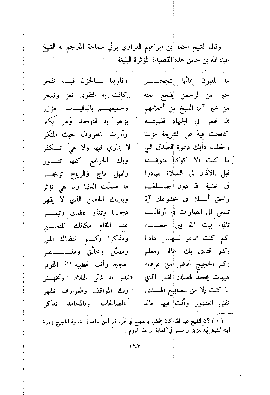 "بسم الله الرحمن الرحيم من محمد بن عبد الوهاب إلي علماء الإسلام في بلد الله الحرام نصر الله بهم دين سيد الأنام عليه أفضل الصلاة والسلام وتابعي الأئمة الأعلام سلام عليكم ورحمة الله وبركاته وبعد جرى علينا من الفتنة ما بلغكم وبلغ غيركم وسببه هدم بنيان في أرضنا على قبور الصالحين ومع هذا نهيناهم عن دعوة الصالحين وأمرناهم بإخلاص الدعاء لله فلما أظهرنا هذه المسالة مع ما ذكرنا من هدم البناء على القبور كبر على العامة وعاضدهم بعض من يدعي العلم لأسباب لا تخفي على مثلكم أعظمها أتباع الهوى مع أسباب أخرى فأشاعوا عنا أنا نسب الصالحين وأنا لسنا على جادة العلماء ورفعوا الأمر إلي المشرق والمغرب فأشاعوا عنا أشياء يستحيى من ذكرها وأنا أخبركم بما نحن عليه بسبب أن مثلكم ما يروج عليه الكذب فنحن ولله الحمد متبعون لا مبتدعون