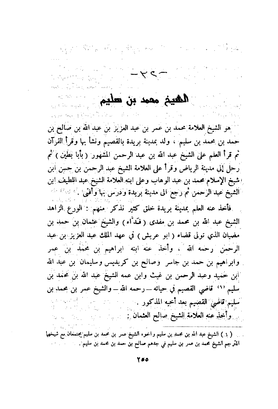 هو العالم الورع التقي الشيخ سليمان بن عبد الرحمن ابن الشيخ محمد بن عمر العمري ولد بالقصيم الإقليم المشهور بنجد عام ألف وثلاثمائة من الهجرة وقرأ القرآن حتى حفظه نظرا وعن ظهر قلب ثم شرع في قراءة العلم على الشيخ محمد بن عبد الله بن سليم ثم رحل إلي مدينة الرياض وقرأ على الشيخ العلامة عبد الله ابن عبد اللطيف آل الشيخ ثم رجع إلي القصيم وقرأ على الشيخ عبد الله ابن الشيخ محمد بن سليم.