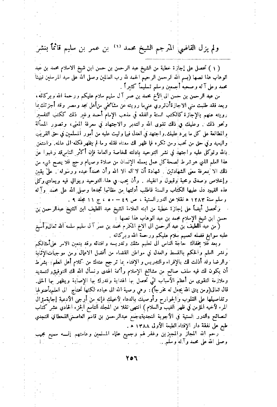 1 الشيخ صالح العثمان القاضي من أسرة القضاة المعروفة وهم من وهبة تميم وتولي قضاء مدنية عنيزة إلي أن توفي وتقدمت ترجمته في هذا الكتاب.