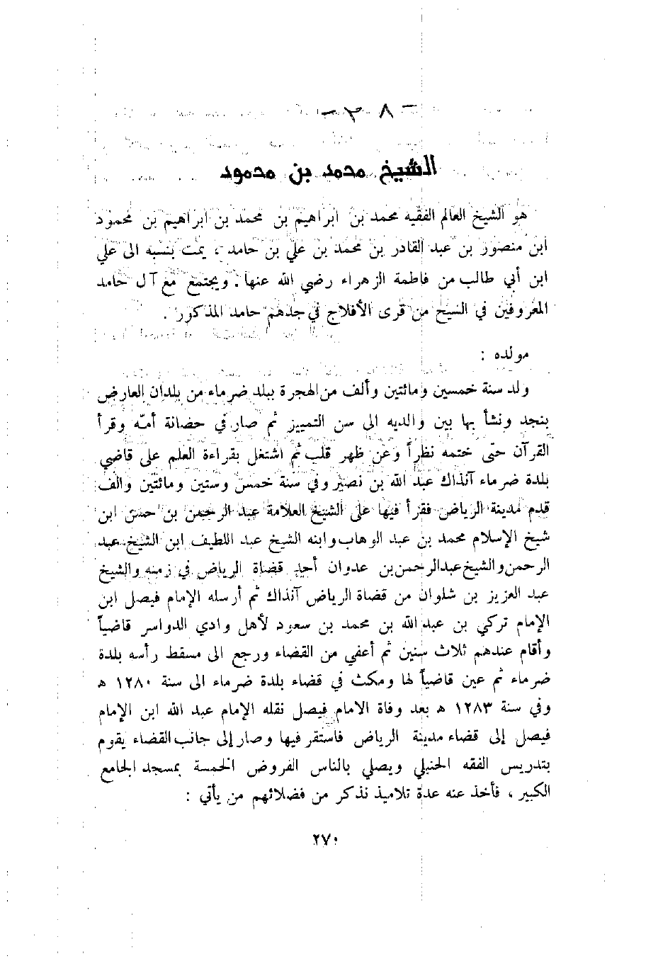 الطلاب أخذوا عنه العلم في قطر وأقام في قطر أربعا وعشرين سنة1 وحج معه سنة 1342هـ وهو مقيم بقطر في أول رمضان واتصل بعمر حمدان المحرسي وقرأ عليه ألفية السيوطي في مصطلح الحديث والنزهة للحافظ ابن حجر وبعض بلوغ المرام حفظا وقرأ عليه وعلى حبيب الله الشنقيطي الأربعين العجلونية وكتب كل واحد منهما إجازة له بها ثم رجع بعد الحج إلي قطر، وبقي في قطر على حالته المذكورة.