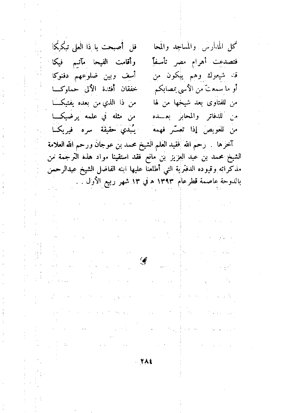 ومن مفردات الشيخ انه كان يجيز الأضحية إلي آخر ذي الحجة، وخالفه أهل العلم في ذلك فجمع كتابا استدل فيه على رأيه بأقوال أهل العلم فجاء كتابا ضخما ولكنه لم يطبع _ وصنف كتابا مبسوطا في مسألة القراءة خلف الإمام سماه "البرهان العجاب، في مسألة فرضية أم الكتاب" طبع بعد وفاته وله غير ذلك رسائل دينية منسوبة إلي بعض تلاميذه.