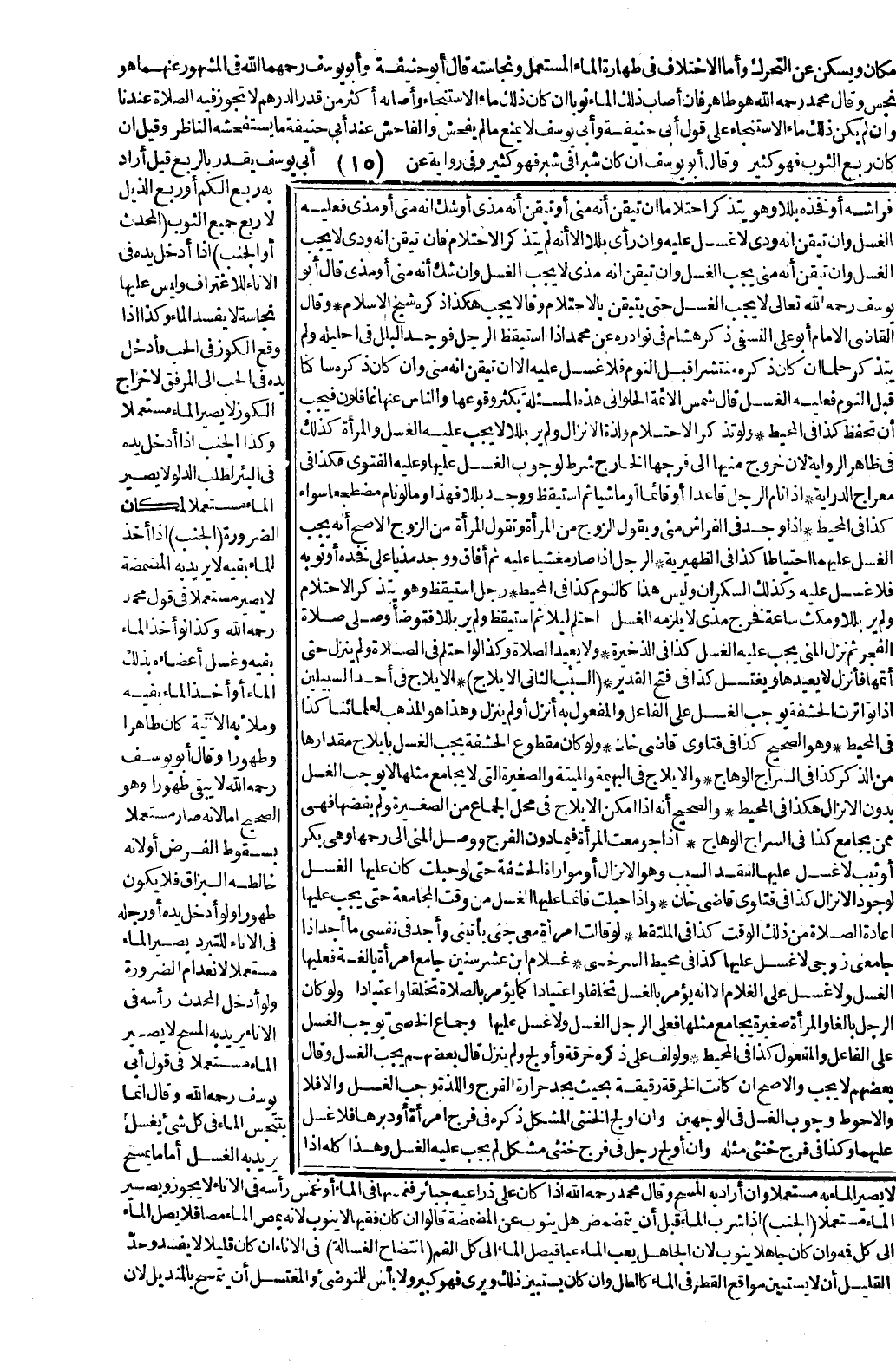 هَكَذَا ذَكَرَهُ شَيْخُ الْإِسْلَامِ وَقَالَ الْقَاضِي الْإِمَامُ أَبُو عَلِيٍّ النَّسَفِيُّ: ذَكَرَ هِشَامٌ فِي نَوَادِرِهِ عَنْ مُحَمَّدٍ إذَا اسْتَيْقَظَ الرَّجُلُ فَوَجَدَ الْبَلَلَ فِي إحْلِيلِهِ وَلَمْ يَتَذَكَّرْ حُلْمًا إنْ كَانَ ذَكَرُهُ مُنْتَشِرًا قَبْلَ النَّوْمِ فَلَا غُسْلَ عَلَيْهِ إلَّا إنْ تَيَقَّنَ أَنَّهُ مَنِيٌّ وَإِنْ كَانَ ذَكَرُهُ سَاكِنًا قَبْلَ النَّوْمِ فَعَلَيْهِ الْغُسْلُ قَالَ شَمْسُ الْأَئِمَّةِ الْحَلْوَانِيُّ هَذِهِ الْمَسْأَلَةُ يَكْثُرُ وُقُوعُهَا وَالنَّاسُ عَنْهَا غَافِلُونَ فَيَجِبُ أَنْ تُحْفَظَ. كَذَا فِي الْمُحِيطِ.