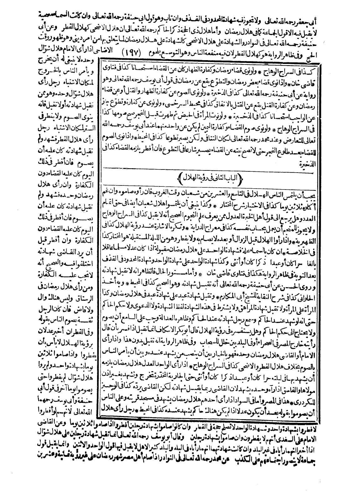 [الْبَابُ الثَّانِي فِي رُؤْيَةِ الْهِلَالِ]