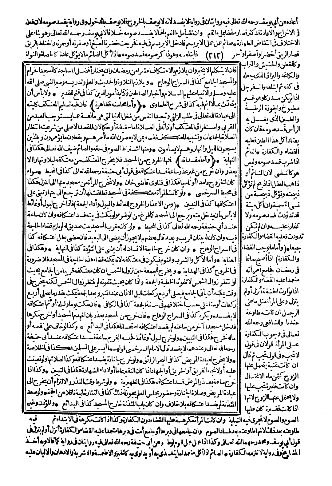 وَلَوْ خَرَجَ لِبَوْلٍ أَوْ غَائِطٍ فَحَبَسَهُ الْغَرِيمُ سَاعَةً فَسَدَ اعْتِكَافُهُ عِنْدَ أَبِي حَنِيفَةَ - رَحِمَهُ اللَّهُ تَعَالَى -، وَعِنْدَهُمَا لَا يَفْسُدُ قَالَ الْإِمَامُ السَّرَخْسِيُّ قَوْلُهُمَا أَيْسَرُ عَلَى الْمُسْلِمِينَ هَكَذَا فِي الْخُلَاصَةِ.