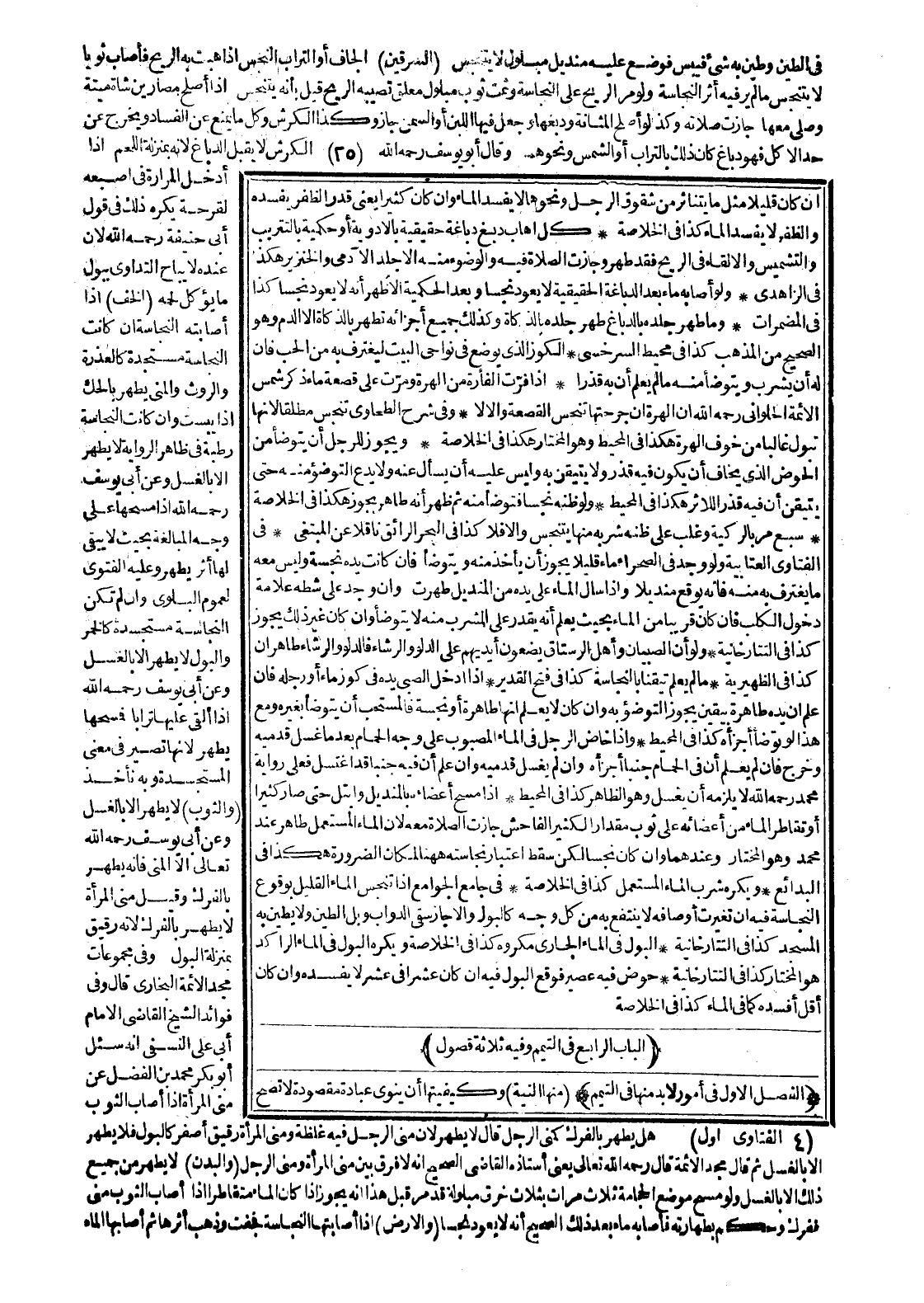 (الْبَابُ الرَّابِعُ فِي التَّيَمُّمِ وَفِيهِ ثَلَاثَةُ فُصُولٍ)