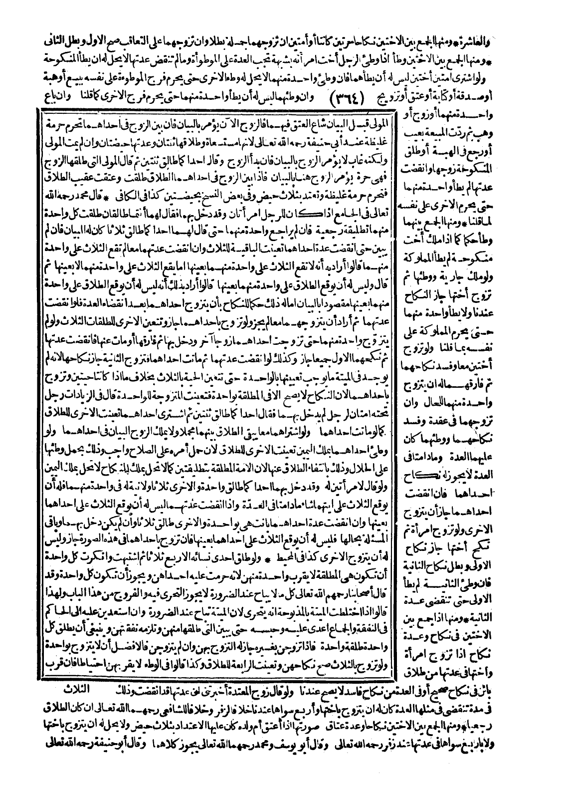 قَالُوا أَرَادَ بِهِ أَنَّهُ لَا تَقَعُ الثَّلَاثُ عَلَى وَاحِدَةٍ مِنْهُمَا بِعَيْنِهَا إمَّا يَقَعُ الثَّلَاثُ عَلَى وَاحِدَةٍ مِنْهُمَا لَا بِعَيْنِهَا ثُمَّ قَالَ وَلَيْسَ لَهُ أَنْ يُوقِعَ الطَّلَاقَ عَلَى وَاحِدَةٍ مِنْهُمَا بِعَيْنِهَا قَالُوا أَرَادَ بِذَلِكَ أَنَّهُ لَيْسَ لَهُ أَنْ يُوقِعَ الطَّلَاقَ عَلَى وَاحِدَةٍ مِنْهُمَا بِعَيْنِهَا مَقْصُودًا بِالْبَيَانِ إمَّا لَهُ ذَلِكَ حُكْمًا لِلنِّكَاحِ بِأَنْ يَتَزَوَّجَ إحْدَاهُمَا بَعْدَ انْقِضَاءِ الْعِدَّةِ فَلَوْ انْقَضَتْ عِدَّتُهُمَا.