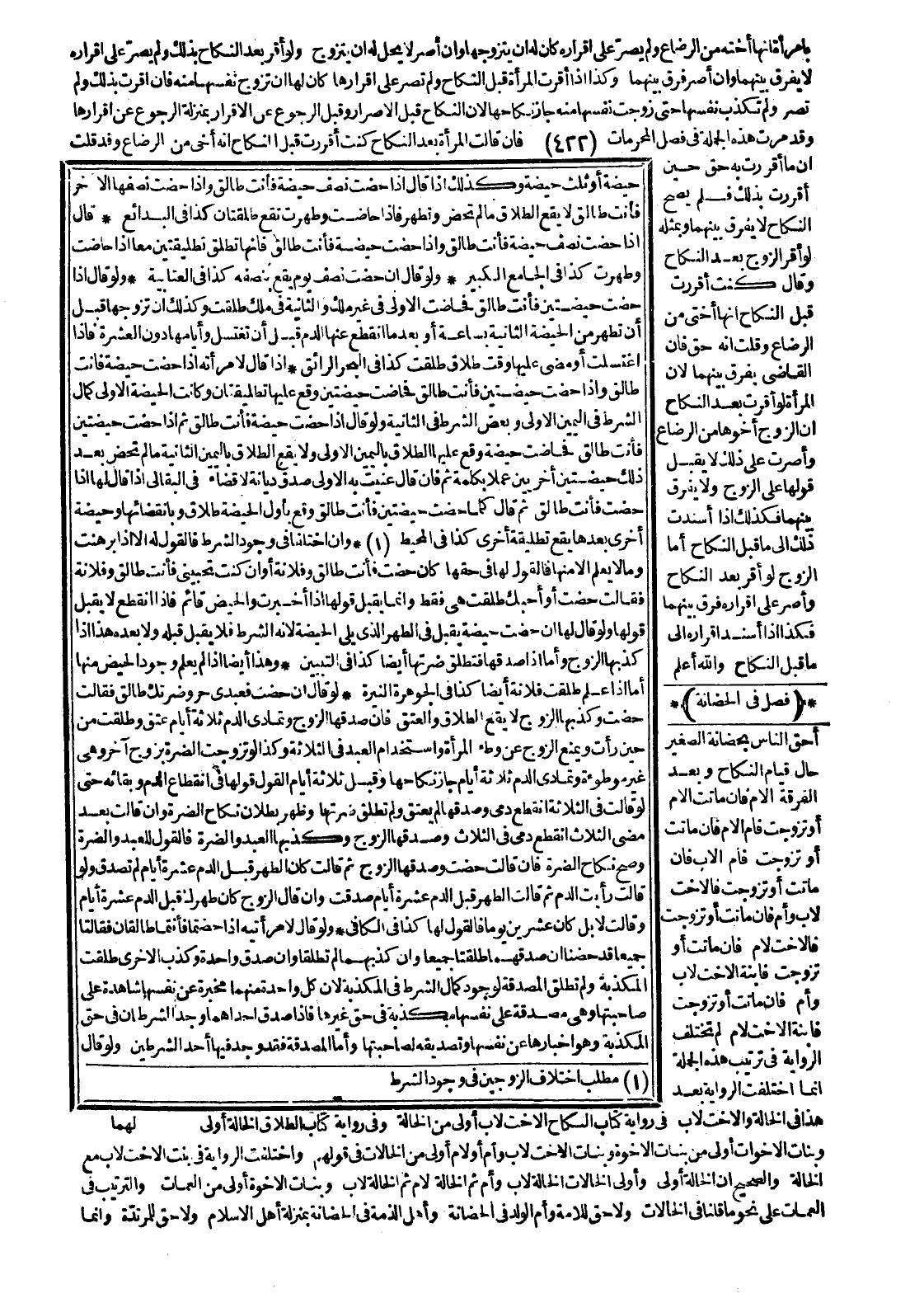 لَوْ قَالَ: إنْ حِضْتِ فَعَبْدِي حُرٌّ وَضَرَّتُكِ طَالِقٌ فَقَالَتْ: حِضْتُ وَكَذَّبَهَا الزَّوْجُ لَا يَقَعُ الطَّلَاقُ وَالْعِتْقُ فَإِنْ صَدَّقَهَا الزَّوْجُ وَتَمَادَى الدَّمُ ثَلَاثَةَ أَيَّامٍ عَتَقَ وَطَلَقَتْ مِنْ حِينِ رَأَتْ وَيُمْنَعُ الزَّوْجُ عَنْ وَطْءِ الْمَرْأَةِ وَاسْتِخْدَامِ الْعَبْدِ فِي الثَّلَاثَةِ وَكَذَا لَوْ تَزَوَّجَتْ الضَّرَّةُ بِزَوْجٍ آخَرَ وَهِيَ غَيْرُ مَوْطُوءَةٍ وَتَمَادَى الدَّمُ ثَلَاثَةَ أَيَّامٍ جَازَ نِكَاحُهَا وَقَبْلَ ثَلَاثَةِ أَيَّامٍ الْقَوْلُ قَوْلُهَا فِي انْقِطَاعِ الدَّمِ وَبَقَائِهِ حَتَّى لَوْ قَالَتْ فِي الثَّلَاثَةِ: انْقَطَعَ دَمِي وَصَدَّقَهَا لَمْ يُعْتَقْ وَلَمْ تَطْلُقْ ضَرَّتُهَا وَظَهَرَ بُطْلَانُ نِكَاحِ الضَّرَّةِ وَإِنْ قَالَتْ بَعْدَ مُضِيِّ الثَّلَاثِ: انْقَطَعَ دَمِي فِي الثَّلَاثِ وَصَدَّقَهَا الزَّوْجُ وَكَذَّبَهَا الْعَبْدُ وَالضَّرَّةُ فَالْقَوْلُ لِلْعَبْدِ وَالضَّرَّةِ وَصَحَّ نِكَاحُ الضَّرَّةِ فَإِنْ قَالَتْ: حِضْتُ وَصَدَّقَهَا الزَّوْجُ ثُمَّ قَالَتْ: كَانَ الطُّهْرُ قَبْلَ الدَّمِ عَشَرَةَ أَيَّامٍ لَمْ تُصَدَّقْ وَلَوْ قَالَتْ: رَأَيْتُ الدَّمَ ثُمَّ قَالَتْ: الطُّهْرُ قَبْلَ الدَّمِ عَشَرَةُ أَيَّامٍ صُدِّقَتْ وَإِنْ قَالَ الزَّوْجُ: كَانَ طُهْرُكِ قَبْلَ الدَّمِ عَشَرَةَ أَيَّامٍ وَقَالَتْ: لَا بَلْ كَانَ عِشْرِينَ يَوْمًا فَالْقَوْلُ لَهَا كَذَا فِي الْكَافِي.