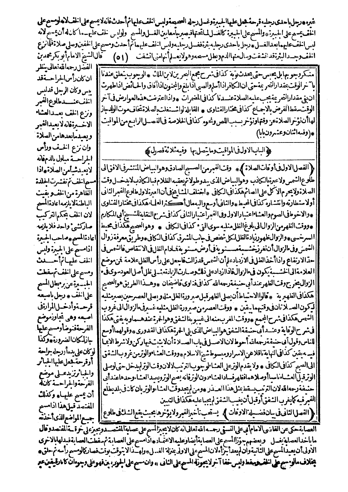 (الْبَابُ الْأَوَّلُ فِي الْمَوَاقِيتِ وَمَا يَتَّصِلُ بِهَا وَفِيهِ ثَلَاثَةُ فُصُولٍ)