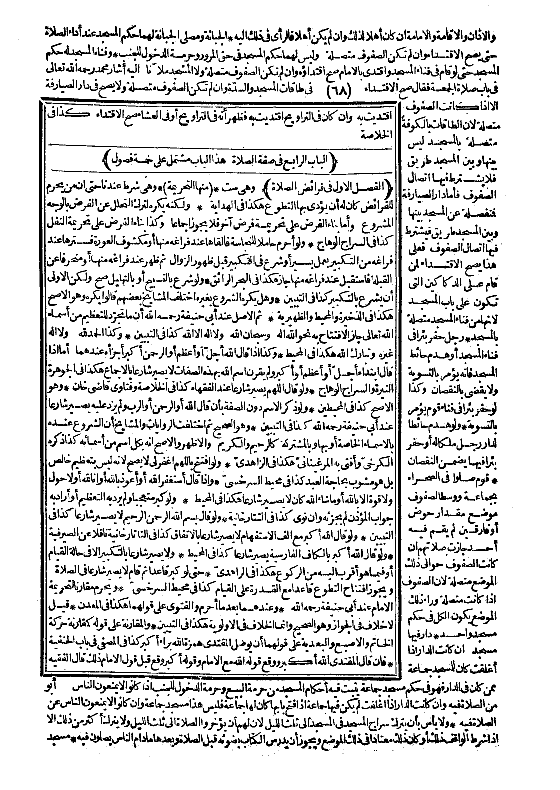 (الْبَابُ الرَّابِعُ فِي صِفَةِ الصَّلَاةِ هَذَا الْبَابُ مُشْتَمِلٌ عَلَى خَمْسَةِ فُصُولٍ)